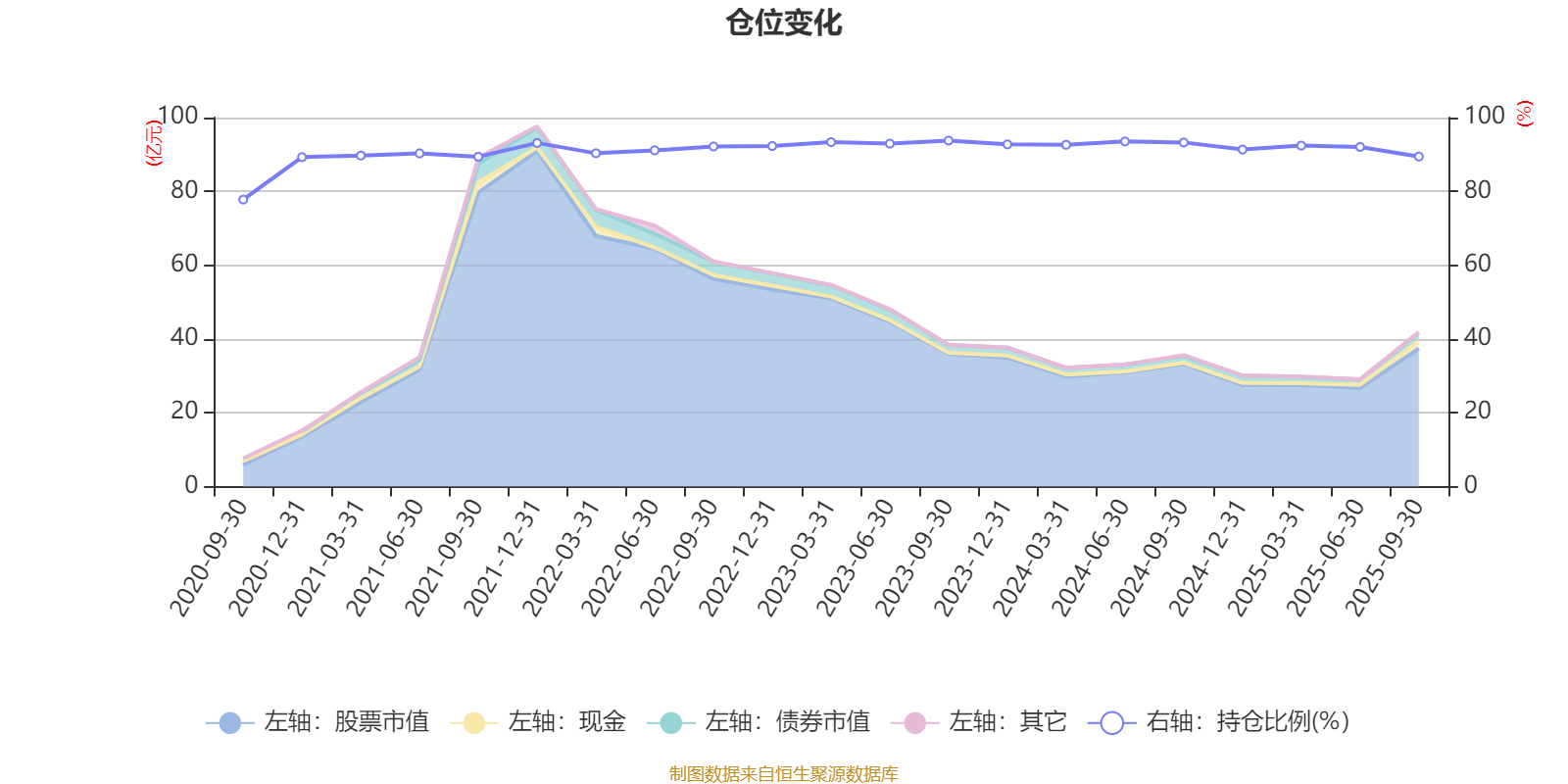 据定期报告数据统计,近三年平均股票仓位为92.48%,同类平均为86.72%。2023年三季度末基金达到93.77%的最高仓位,2020年三季度末最低,为77.78%。