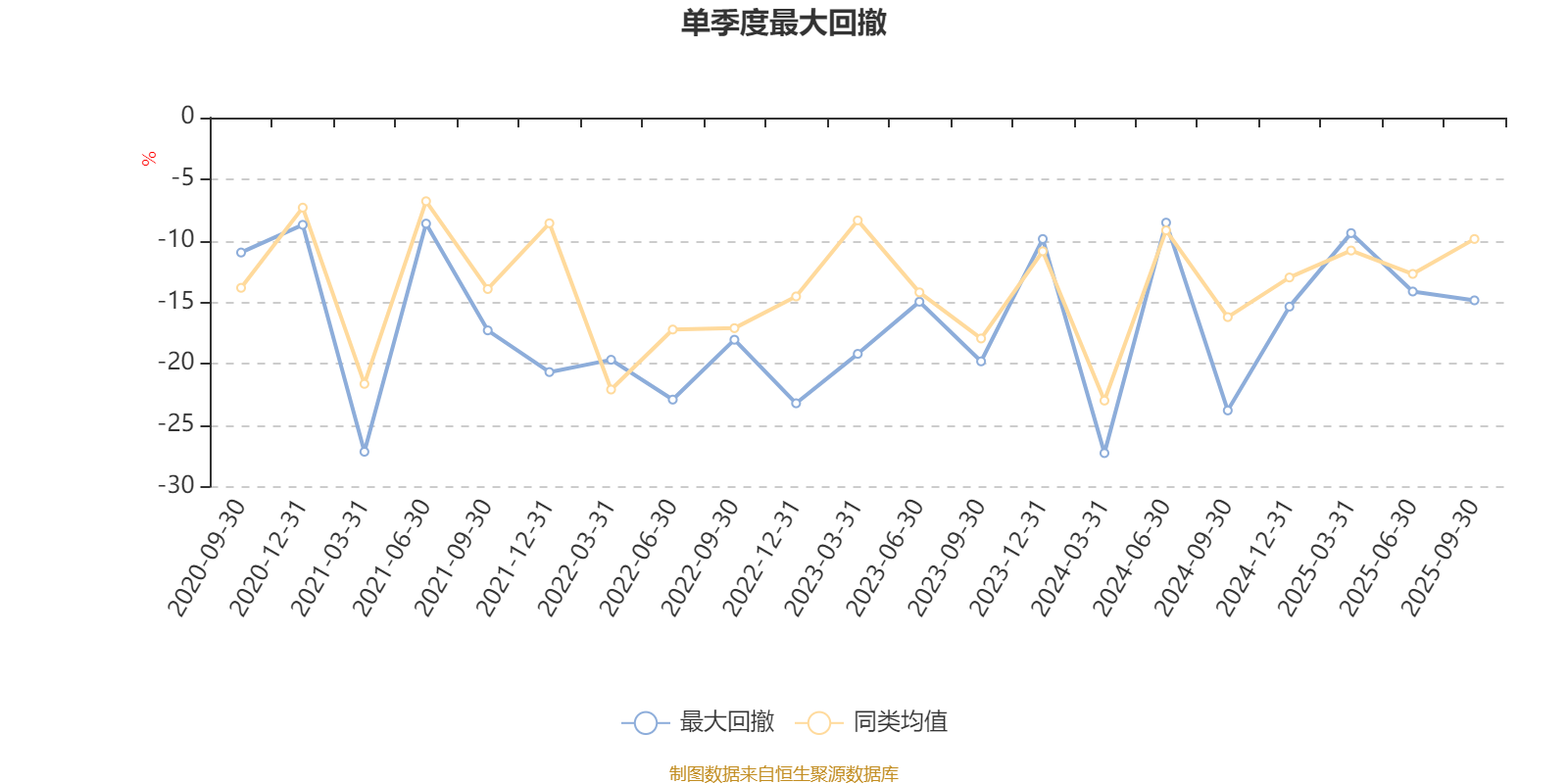 截至10月24日,基金近三年最大回撤为54.32%,同类可比基金排名146/159。单季度最大回撤出现在2024年一季度,为27.28%。