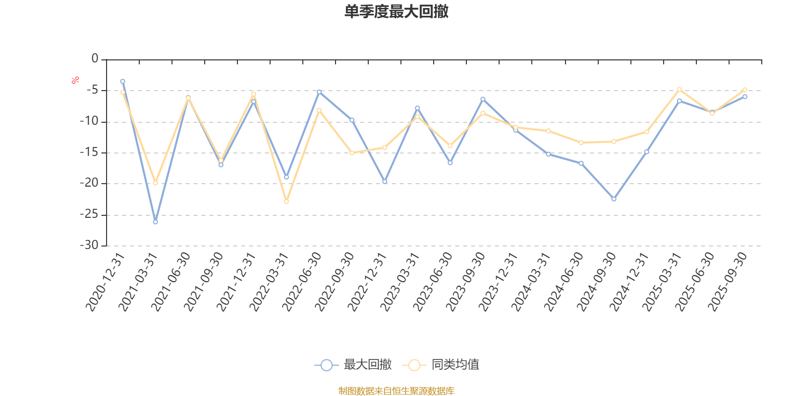通过所选区间该基金净值增长率分位图,可以观察该基金与同类基金业绩比较情况。图为坐标原点到区间内某时点的净值增长率在同类基金中的分位数。
