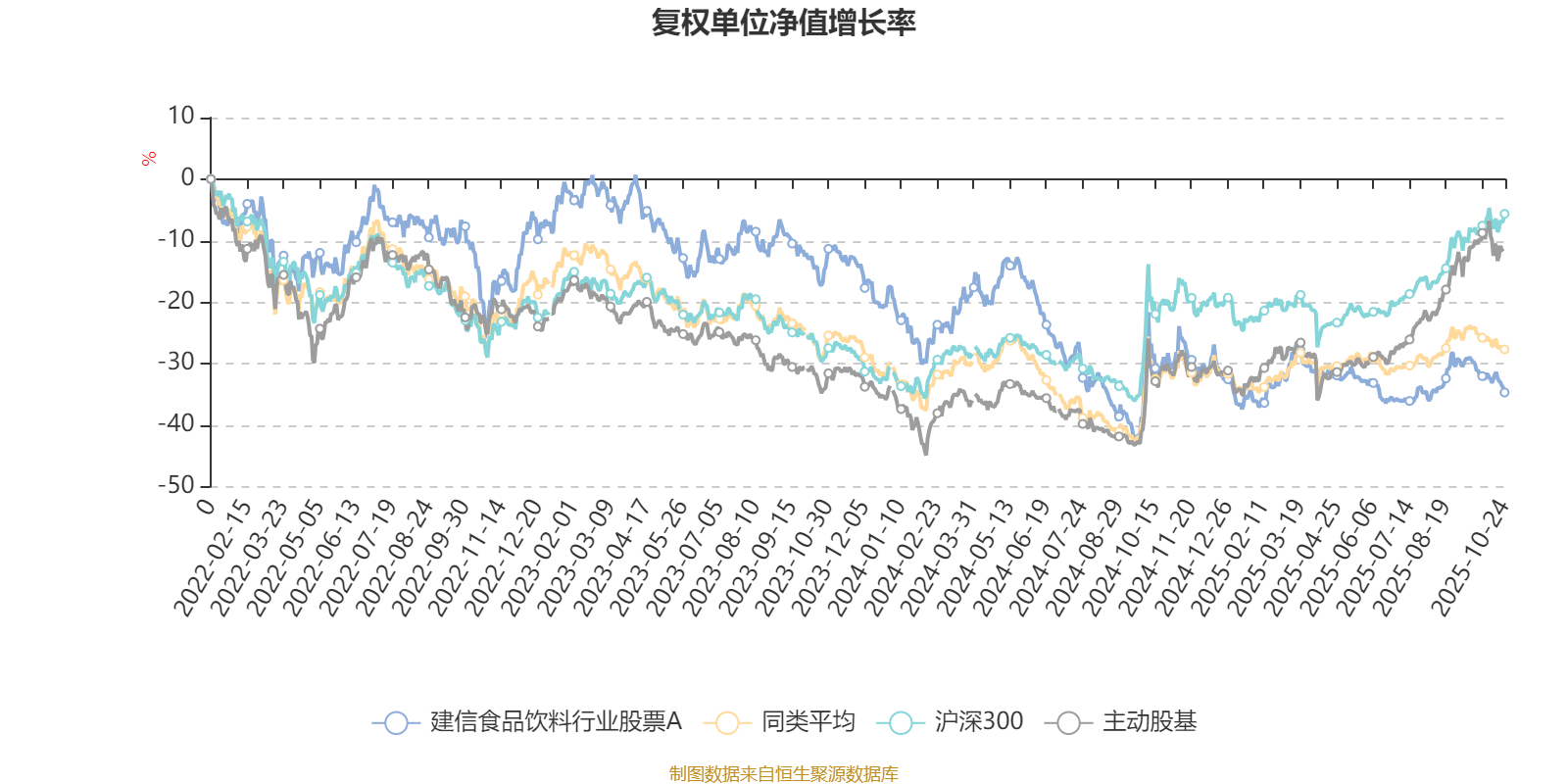 截至10月24日,建信食品饮料行业股票A近三个月复权单位净值增长率为-1.51%,位于同类可比基金32/43;近半年复权单位净值增长率为-4.44%,位于同类可比基金43/43;近一年复权单位净值增长率为-6.29%,位于同类可比基金41/43;近三年复权单位净值增长率为-18.89%,位于同类可比基金36/40。