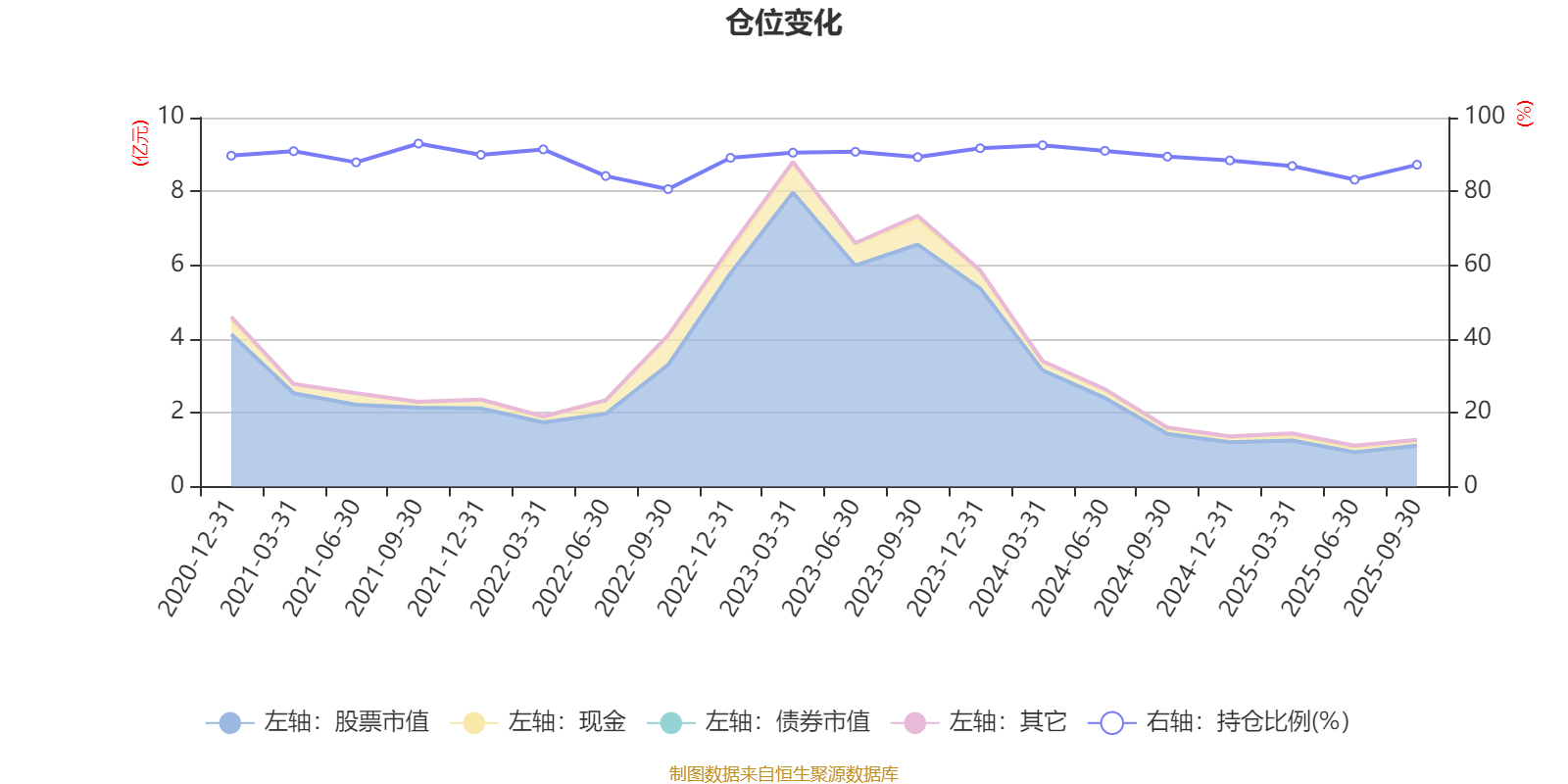 据定期报告数据统计,近三年平均股票仓位为89.16%,同类平均为88.04%。2021年三季度末基金达到92.96%的最高仓位,2022年三季度末最低,为80.62%。