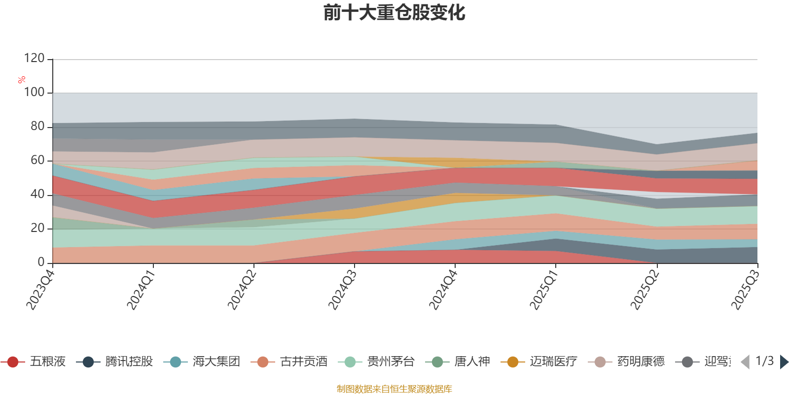 该基金持股集中度较高,近2年前十大重仓股集中度长期超过60%。截至2025年三季度末,基金十大重仓股分别是贵州茅台、山西汾酒、腾讯控股、泸州老窖、古井贡酒、乖宝宠物、今世缘、牧原股份、安琪酵母、海大集团。