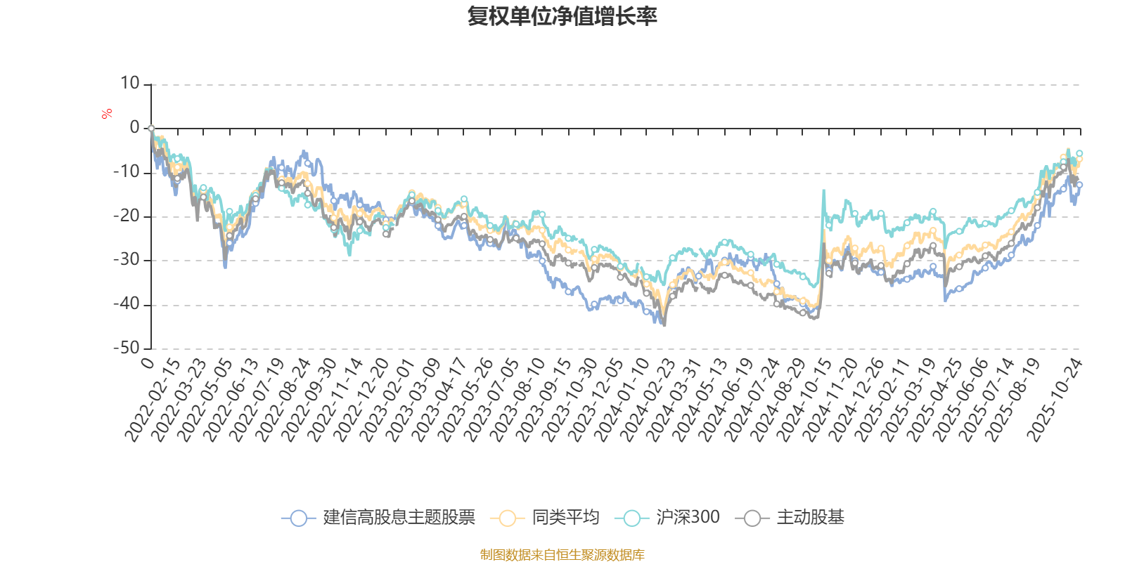 截至10月24日,建信高股息主题股票近三个月复权单位净值增长率为17.25%,位于同类可比基金69/167;近半年复权单位净值增长率为36.15%,位于同类可比基金47/166;近一年复权单位净值增长率为25.68%,位于同类可比基金99/164;近三年复权单位净值增长率为4.14%,位于同类可比基金113/156。