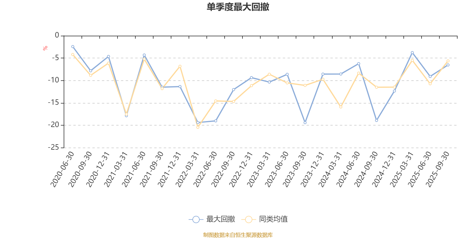通过所选区间该基金净值增长率分位图,可以观察该基金与同类基金业绩比较情况。图为坐标原点到区间内某时点的净值增长率在同类基金中的分位数。