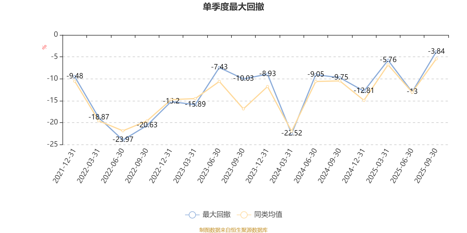 截至10月24日,基金近三年最大回撤为38.62%,同类可比基金排名4/29。单季度最大回撤出现在2022年二季度,为23.97%。