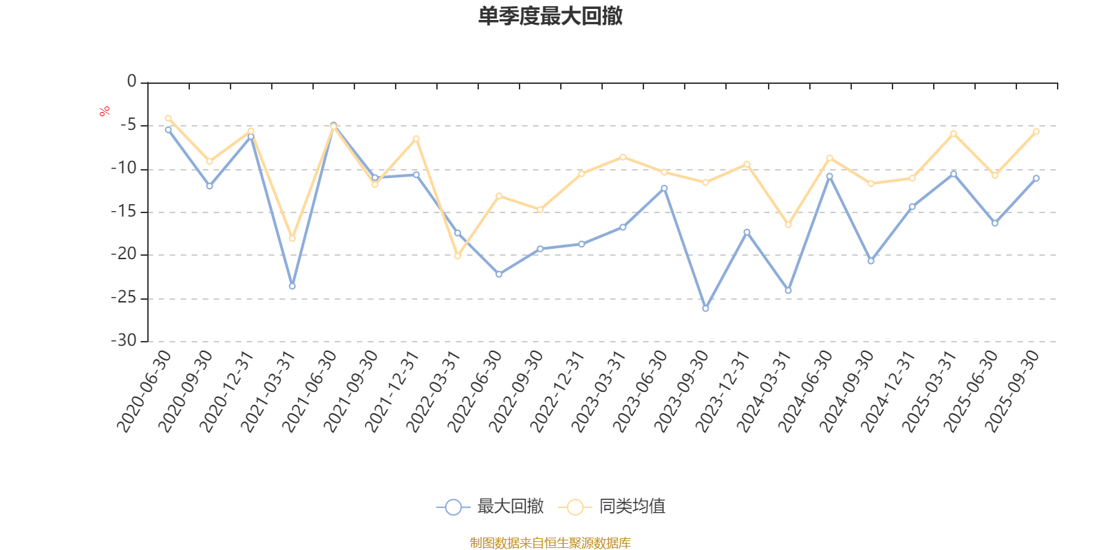 通过所选区间该基金净值增长率分位图,可以观察该基金与同类基金业绩比较情况。图为坐标原点到区间内某时点的净值增长率在同类基金中的分位数。