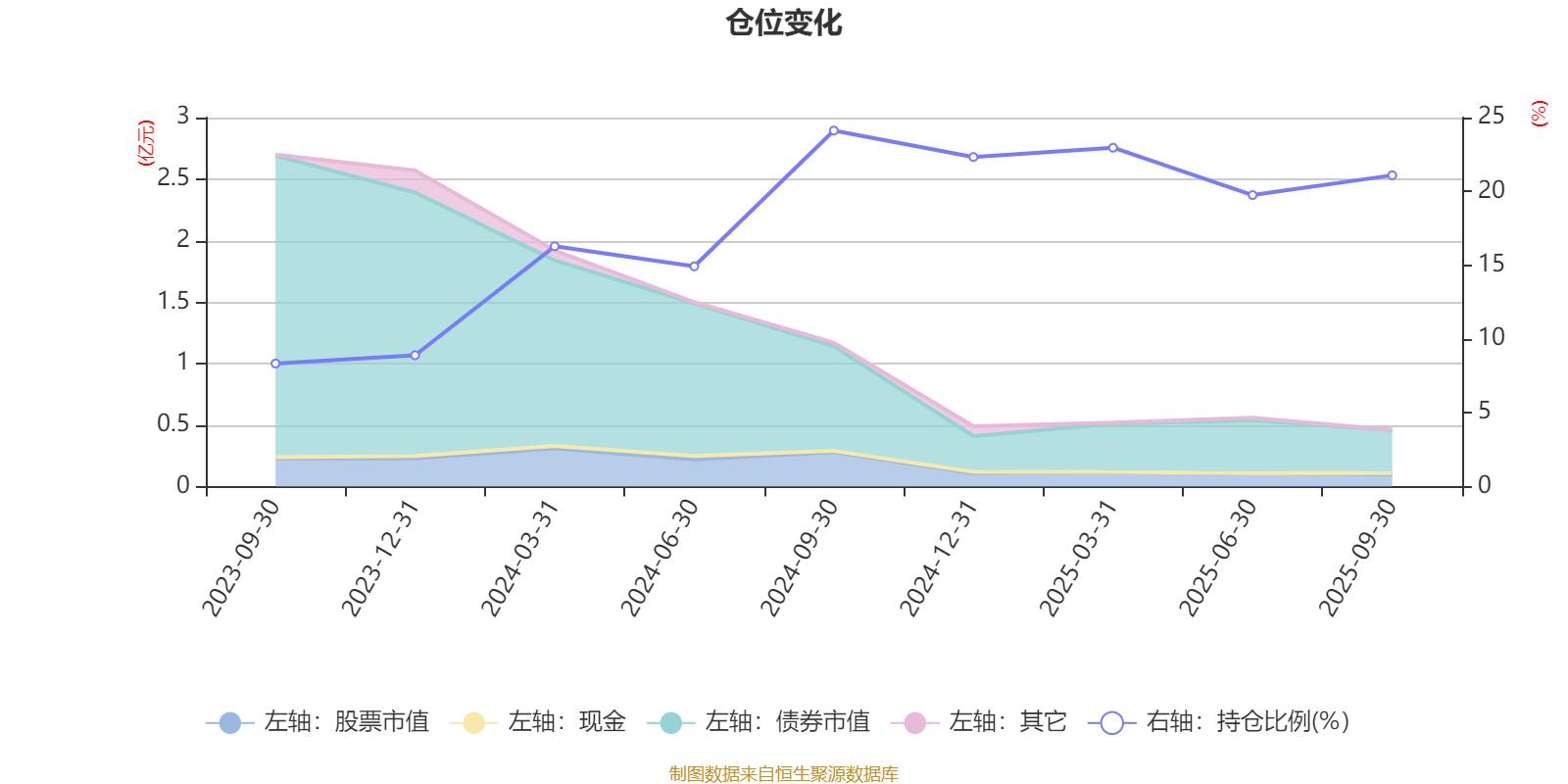 基金管理人在三季报中表示,报告期内,本产品主要投资于高评级信用债,降低了组合的久期,获取了稳健的收益。权益方面,降低了可转换债券的仓位,保持较高的股票仓位,股票主要投资于科技成长方向,参与了算力、军工、机器人、有色金属和电力设备等方向的投资,取得了不错的收益。