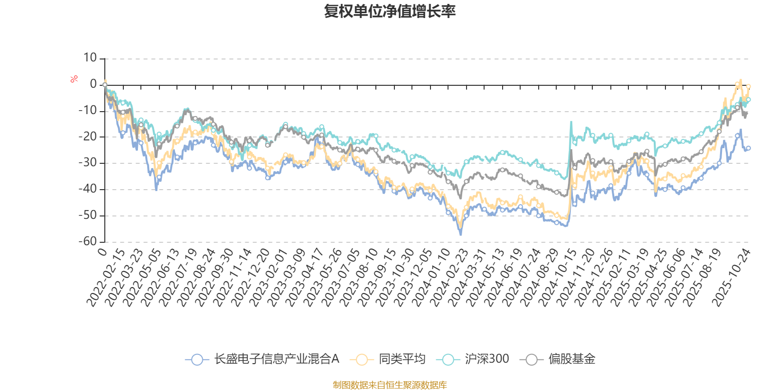 截至10月24日,长盛电子信息产业混合A近三个月复权单位净值增长率为12.73%,位于同类可比基金208/229;近半年复权单位净值增长率为27.50%,位于同类可比基金198/229;近一年复权单位净值增长率为34.99%,位于同类可比基金173/213;近三年复权单位净值增长率为9.45%,位于同类可比基金142/158。