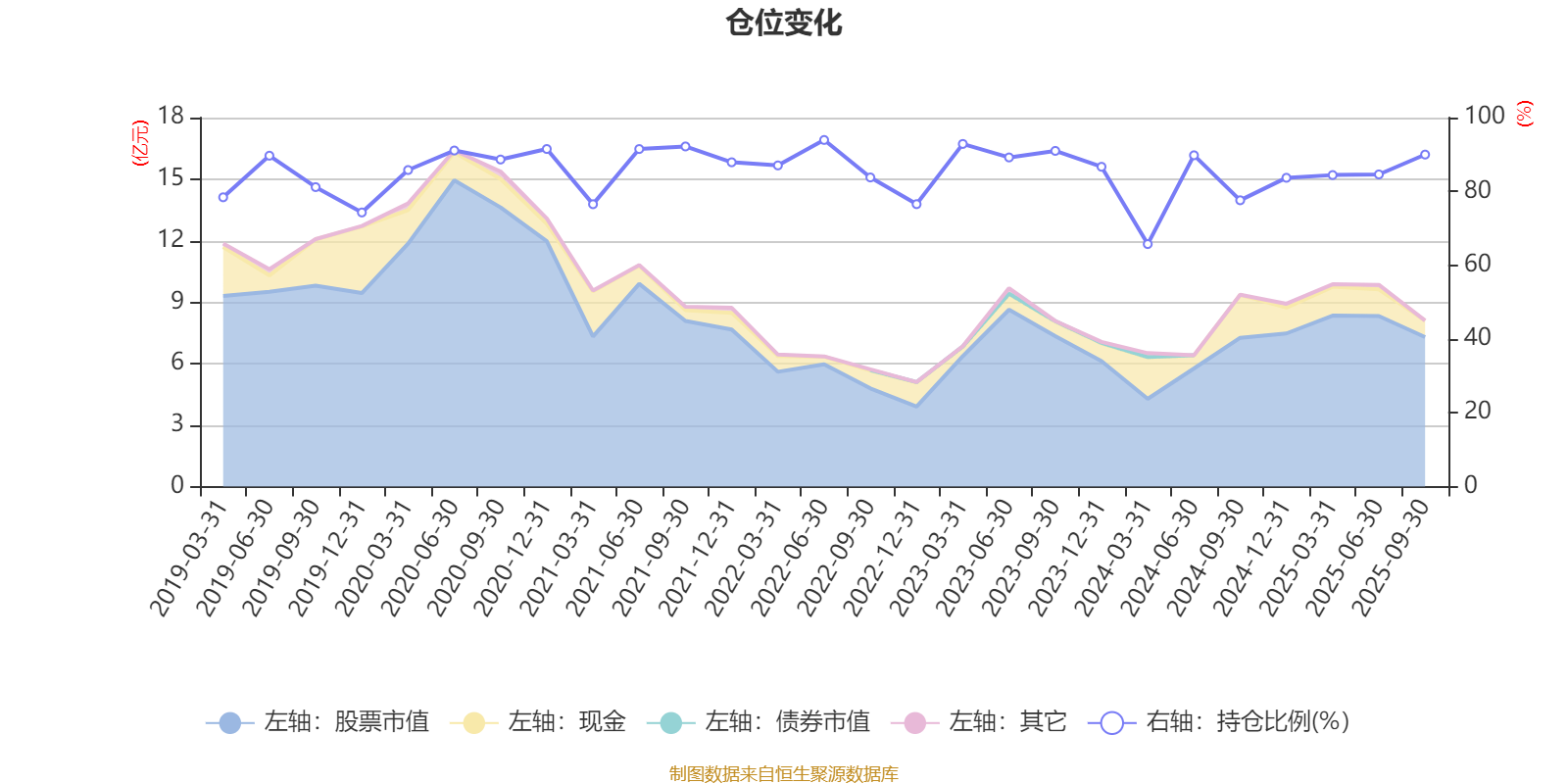 据定期报告数据统计,近三年平均股票仓位为84.34%,同类平均为86.72%。2022年上半年末基金达到93.94%的最高仓位,2024年一季度末最低,为65.72%。