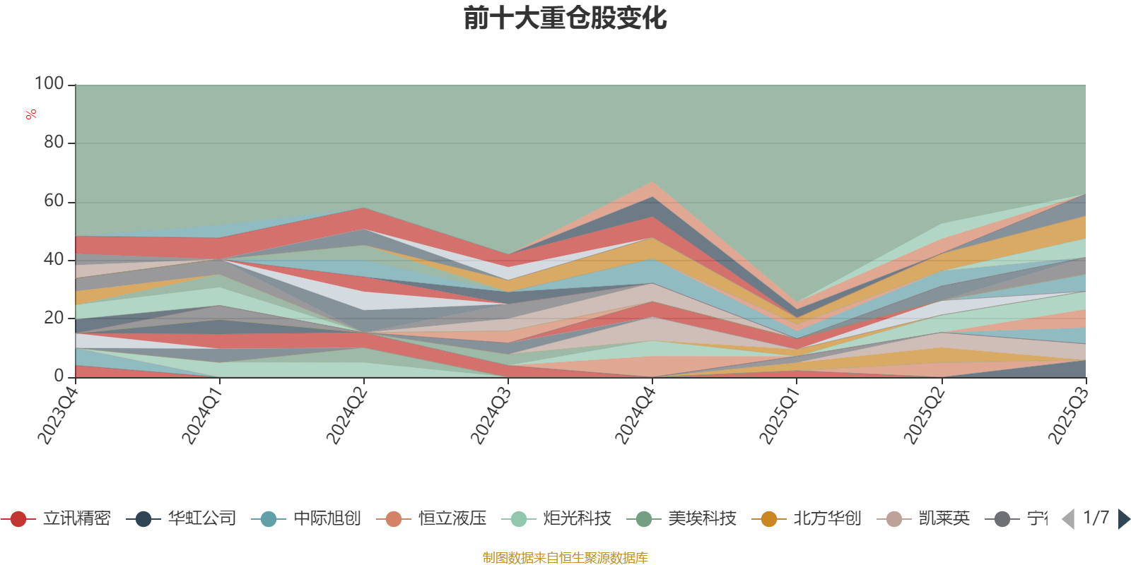截至2025年三季度末,基金十大重仓股分别是德赛西威、亿纬锂能、牧原股份、迈瑞医疗、联影医疗、华虹公司、芒果超媒、恺英网络、凯莱英、欧陆通。