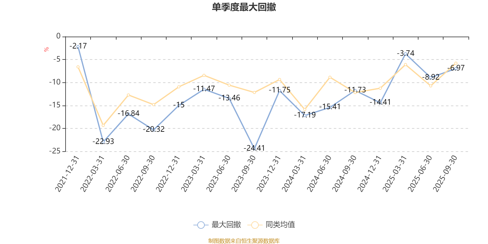截至10月24日,基金近三年最大回撤为53.22%,同类可比基金排名343/365。单季度最大回撤出现在2023年三季度,为24.41%。