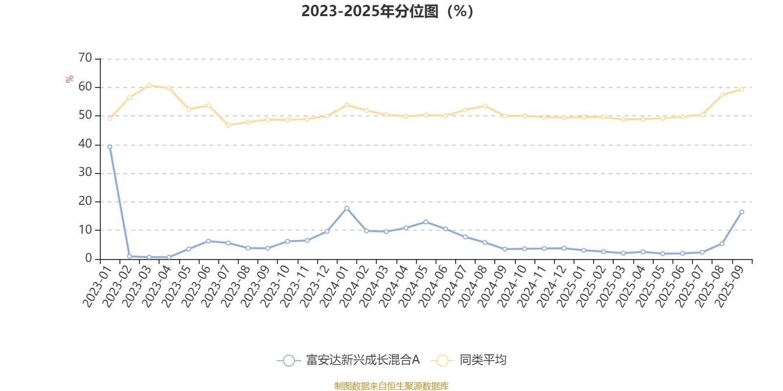 通过所选区间该基金净值增长率分位图,可以观察该基金与同类基金业绩比较情况。图为坐标原点到区间内某时点的净值增长率在同类基金中的分位数。