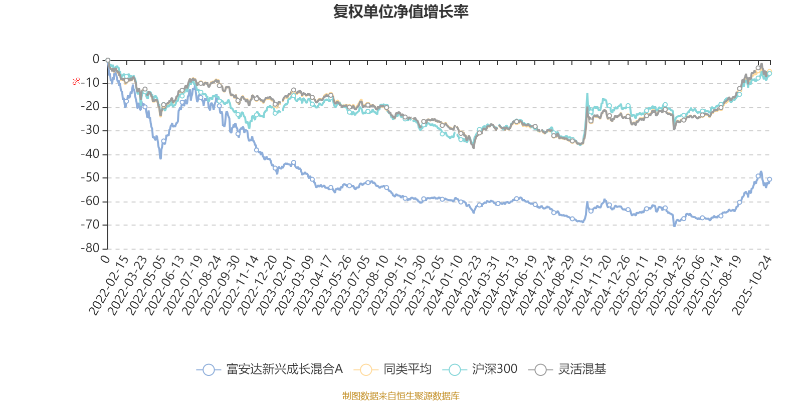 截至10月24日,富安达新兴成长混合A近三个月复权单位净值增长率为38.88%,位于同类可比基金85/1287;近半年复权单位净值增长率为51.14%,位于同类可比基金128/1287;近一年复权单位净值增长率为33.58%,位于同类可比基金348/1287;近三年复权单位净值增长率为-29.73%,位于同类可比基金1257/1286。
