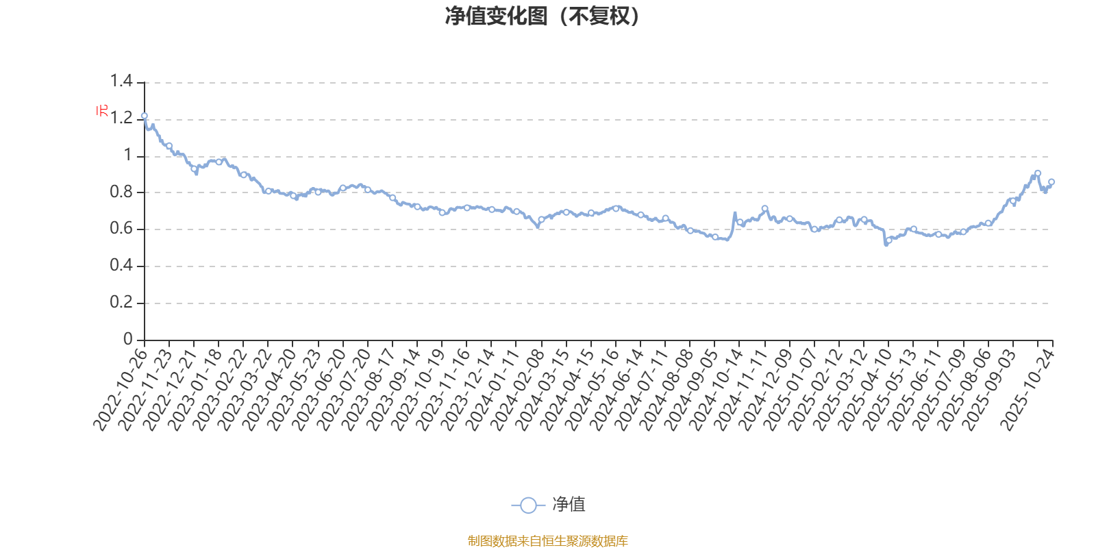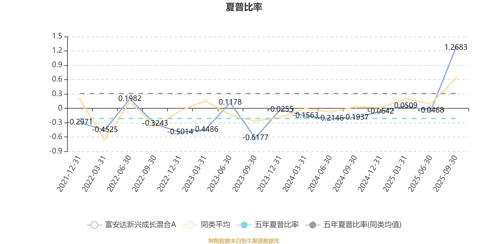 截至9月30日,基金近三年夏普比率为-0.0451,位于同类可比基金1200/1285。