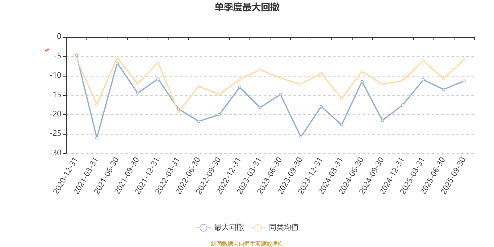 通过所选区间该基金净值增长率分位图,可以观察该基金与同类基金业绩比较情况。图为坐标原点到区间内某时点的净值增长率在同类基金中的分位数。