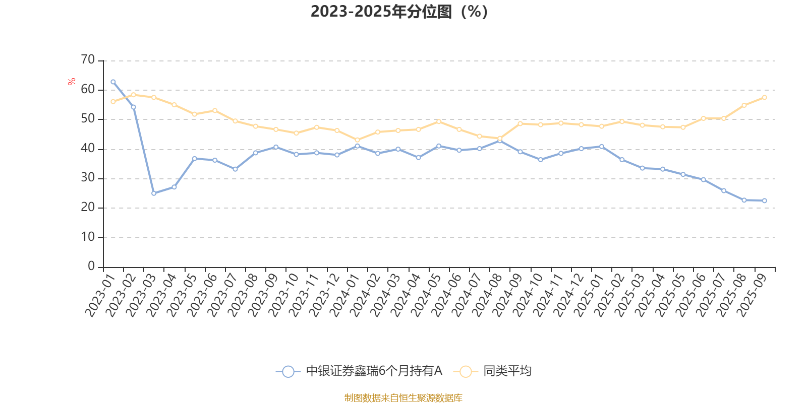 通过所选区间该基金净值增长率分位图,可以观察该基金与同类基金业绩比较情况。图为坐标原点到区间内某时点的净值增长率在同类基金中的分位数。