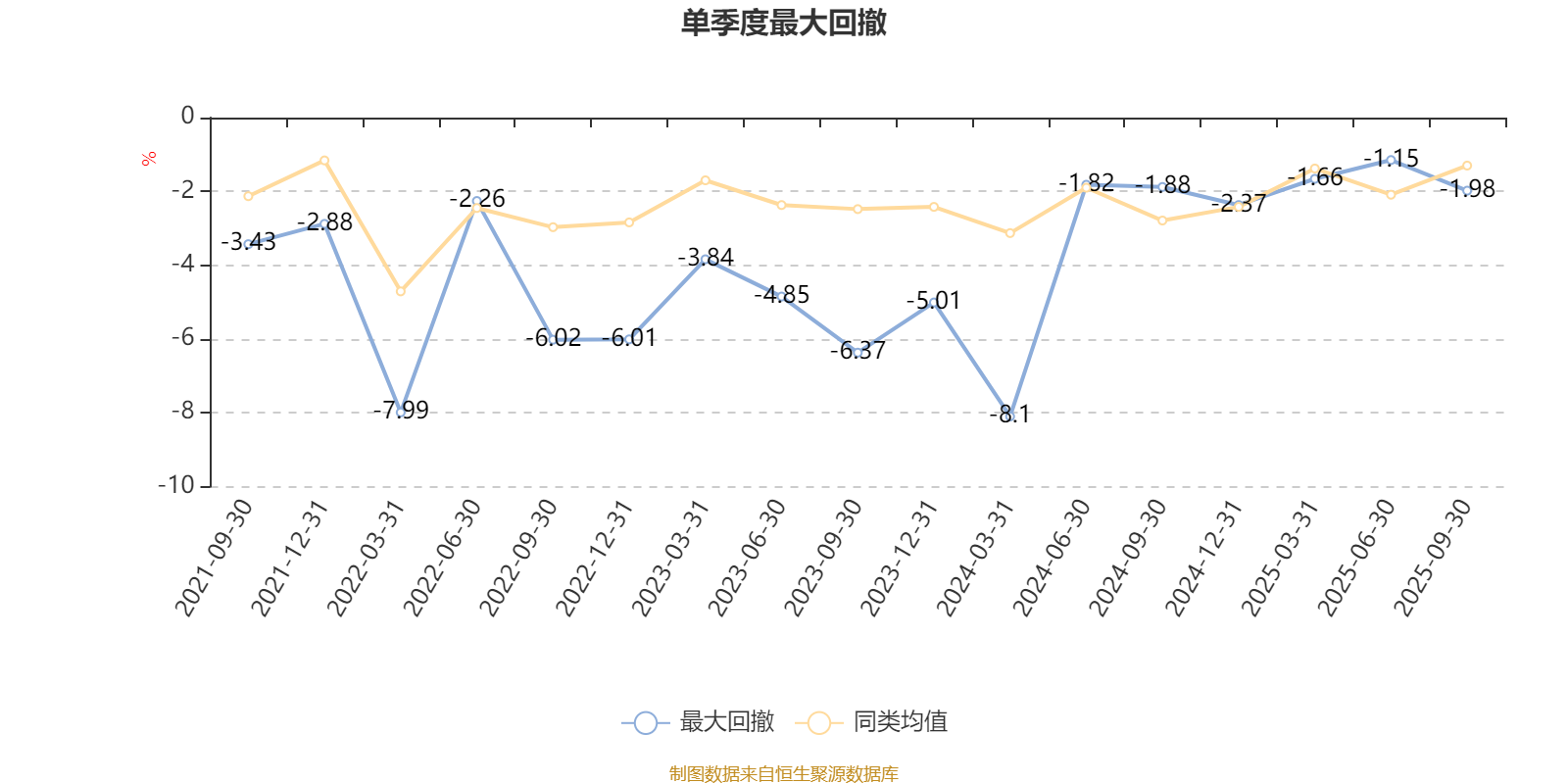 截至10月24日,基金近三年最大回撤为20.05%,同类可比基金排名535/552。单季度最大回撤出现在2024年一季度,为8.1%。