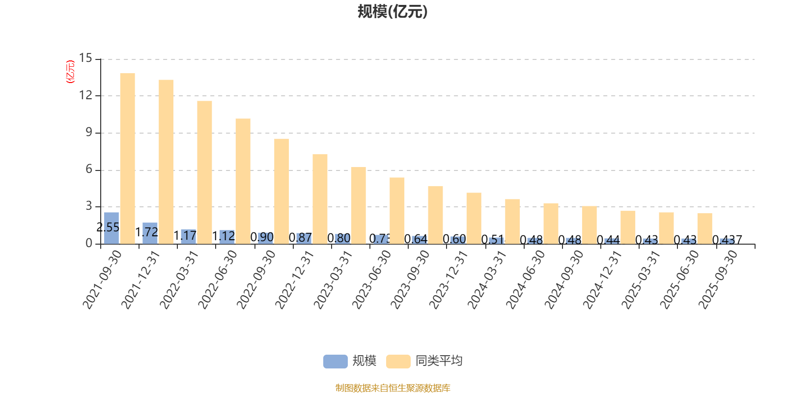 截至9月30日,基金近三年夏普比率为-0.2543,位于同类可比基金531/553。