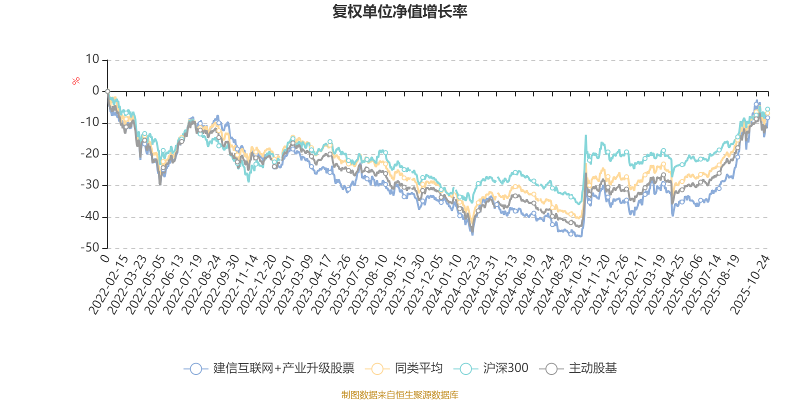 截至10月24日,建信互联网+产业升级股票近三个月复权单位净值增长率为28.15%,位于同类可比基金24/167;近半年复权单位净值增长率为42.36%,位于同类可比基金30/166;近一年复权单位净值增长率为37.75%,位于同类可比基金53/164;近三年复权单位净值增长率为14.95%,位于同类可比基金91/156。