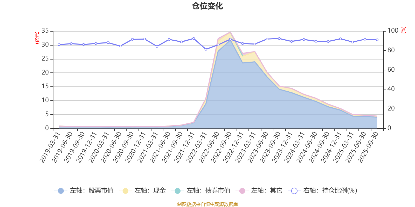 据定期报告数据统计,近三年平均股票仓位为90.07%,同类平均为88.21%。2021年末基金达到92.35%的最高仓位,2022年一季度末最低,为81.27%。