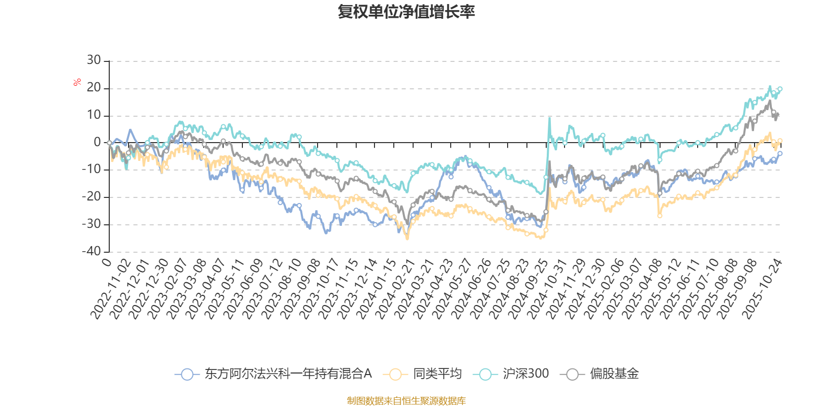 截至10月24日,东方阿尔法兴科一年持有混合A近三个月复权单位净值增长率为7.00%,位于同类可比基金476/621;近半年复权单位净值增长率为14.64%,位于同类可比基金515/618;近一年复权单位净值增长率为9.58%,位于同类可比基金557/611;近三年复权单位净值增长率为-4.37%,位于同类可比基金431/518。
