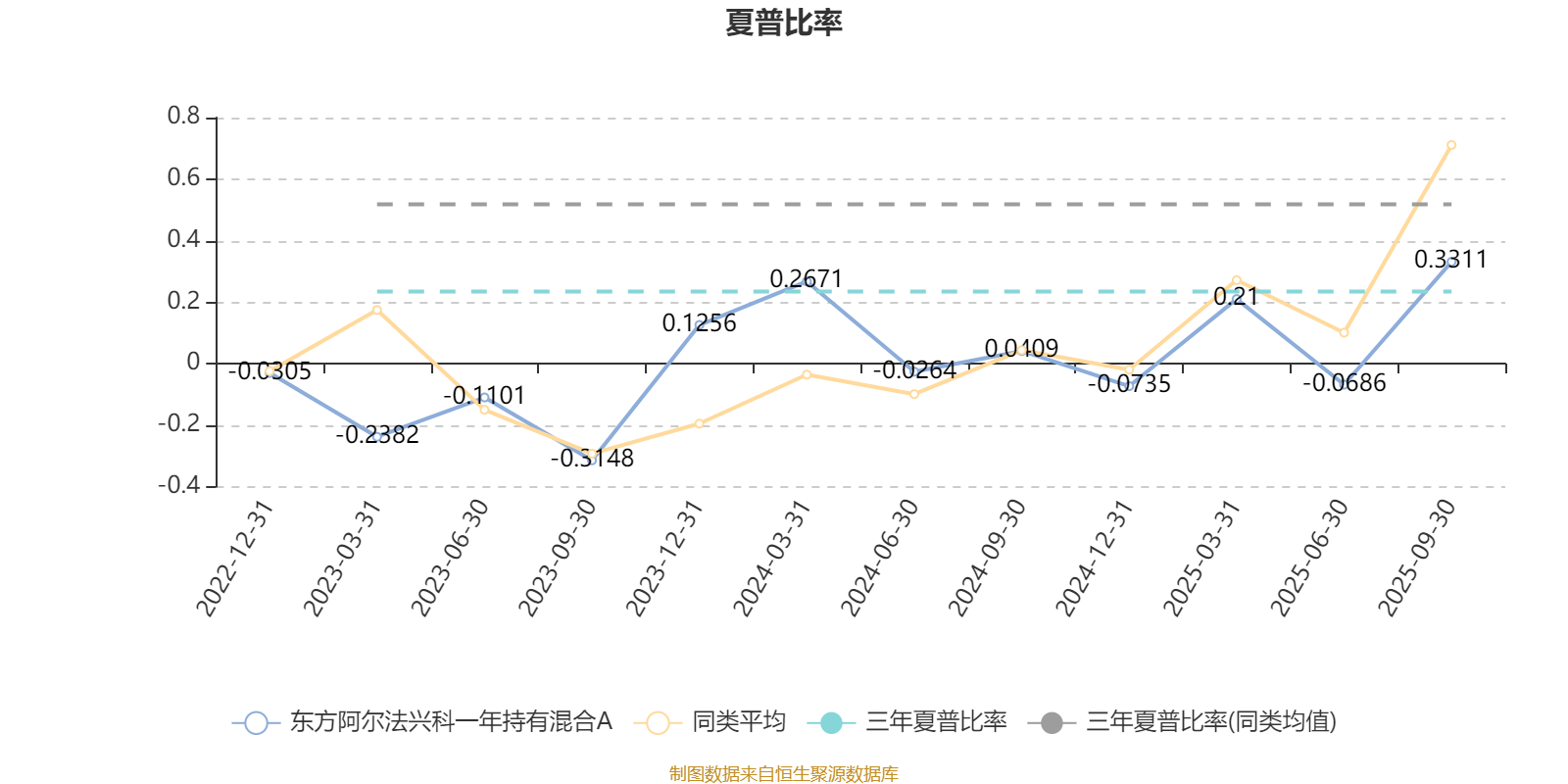 截至9月30日,基金近三年夏普比率为0.234,位于同类可比基金428/518。