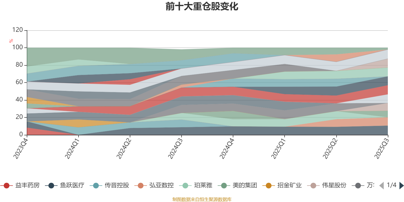 该基金持股集中度较高,近2年前十大重仓股集中度长期超过60%。截至2025年三季度末,基金十大重仓股分别是鱼跃医疗、云铝股份、兔宝宝、第一拖拉机股份、浩洋股份、海尔智家、中国海洋石油、弘亚数控、伟星股份、美的集团。