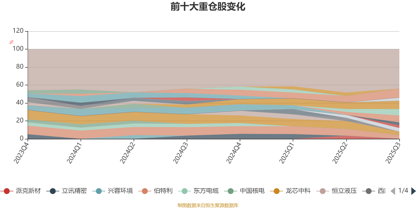 该基金持股集中度较高。截至2025年三季度末,基金十大重仓股分别是科博达、寒武纪、甘李药业、生益科技、紫金矿业、伯特利、龙芯中科、芒果超媒、安集科技、航发动力。