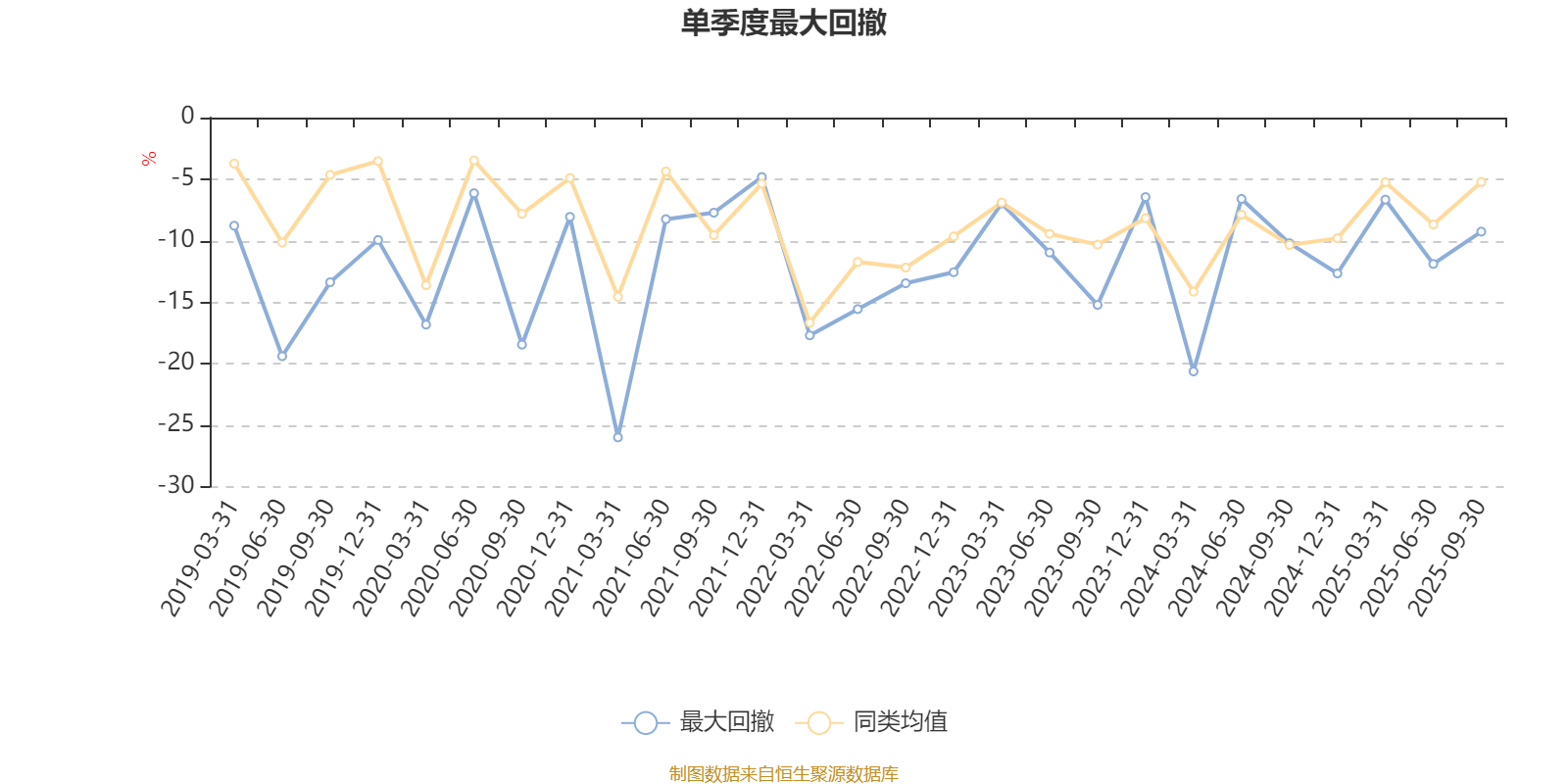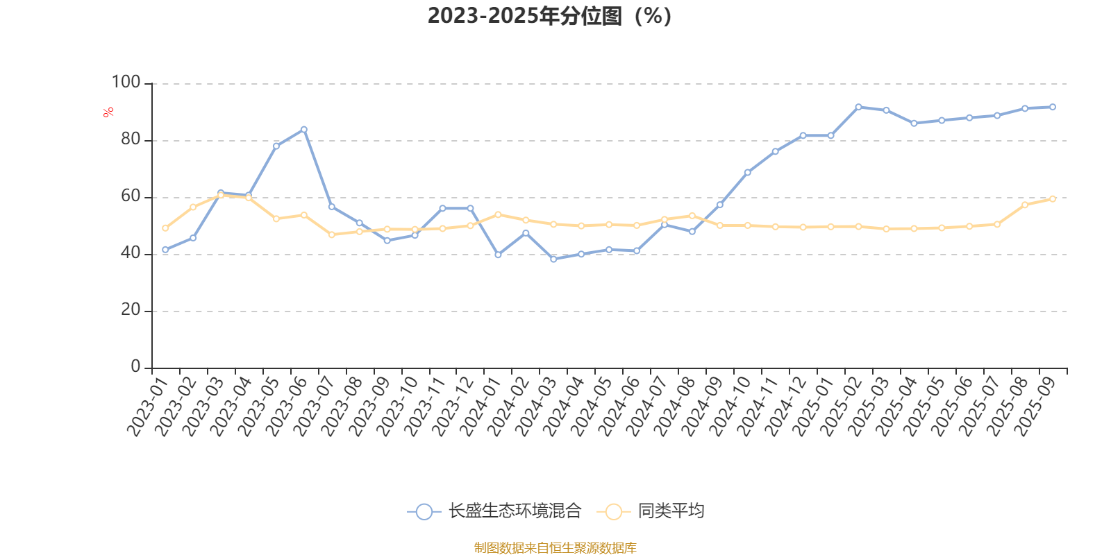 通过所选区间该基金净值增长率分位图,可以观察该基金与同类基金业绩比较情况。图为坐标原点到区间内某时点的净值增长率在同类基金中的分位数。