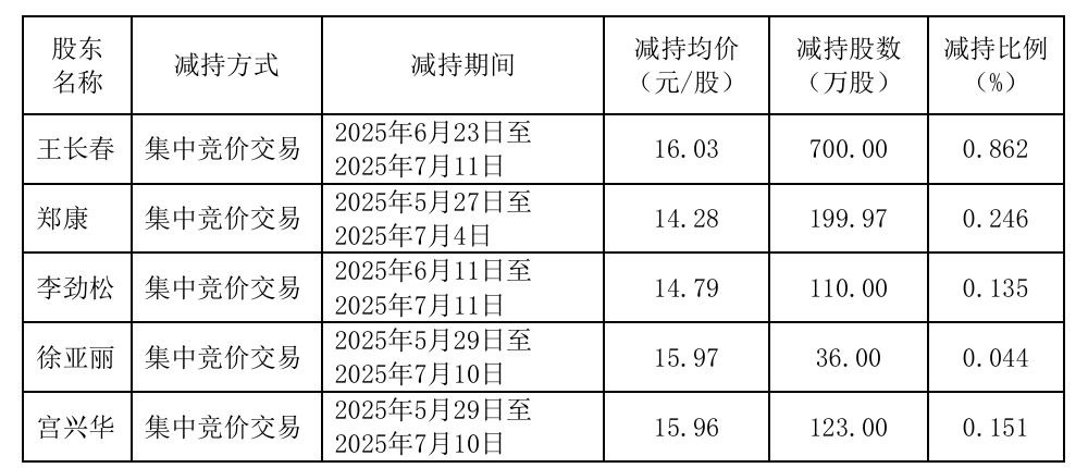 在此之前,长亮科技控股股东、实际控制人、董事长王长春,董事郑康,董事兼总经理李劲松,董事兼副总经理及董事会秘书徐亚丽,监事会主席宫兴华曾出手减持公司股份。其中,王长春于6月23日至7月11日减持长亮科技700万股,减持均价16.03元/股,减持总金额约1.12亿元。