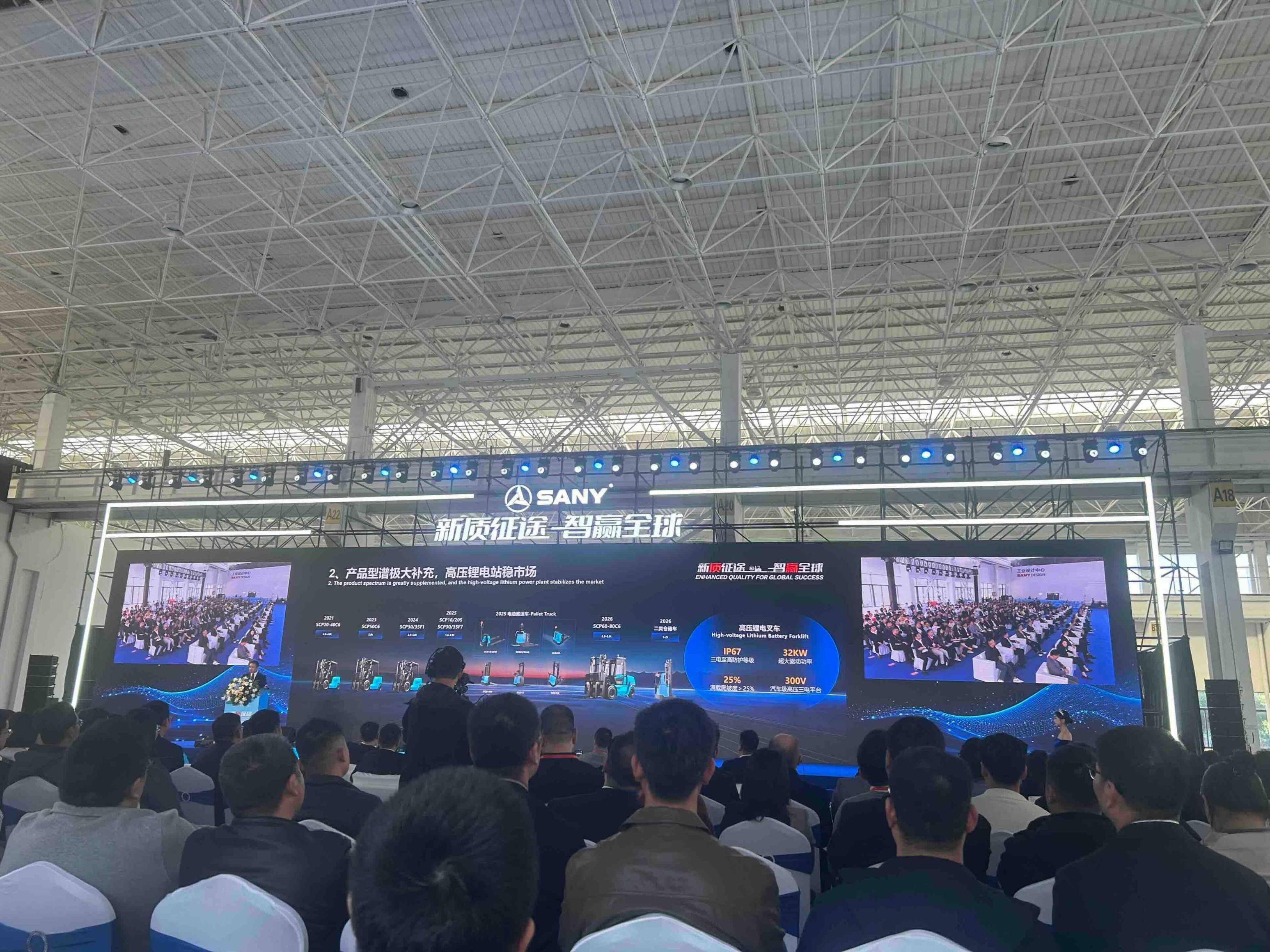 10月24日,湖南省长沙市,三一机器人以“新质征途·智赢未来”为主题举行了全球新品发布会。会上,应用了行业首个八合一动力总成、96V双水冷系统等突破性技术的F7系列平衡重叉车,和S系列三支点叉车正式亮相。