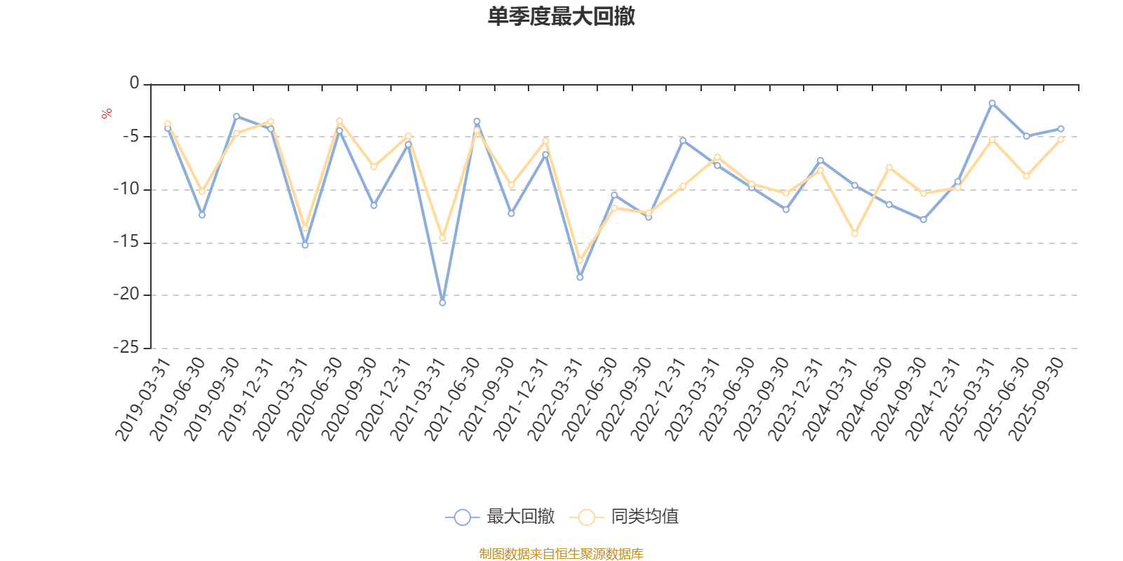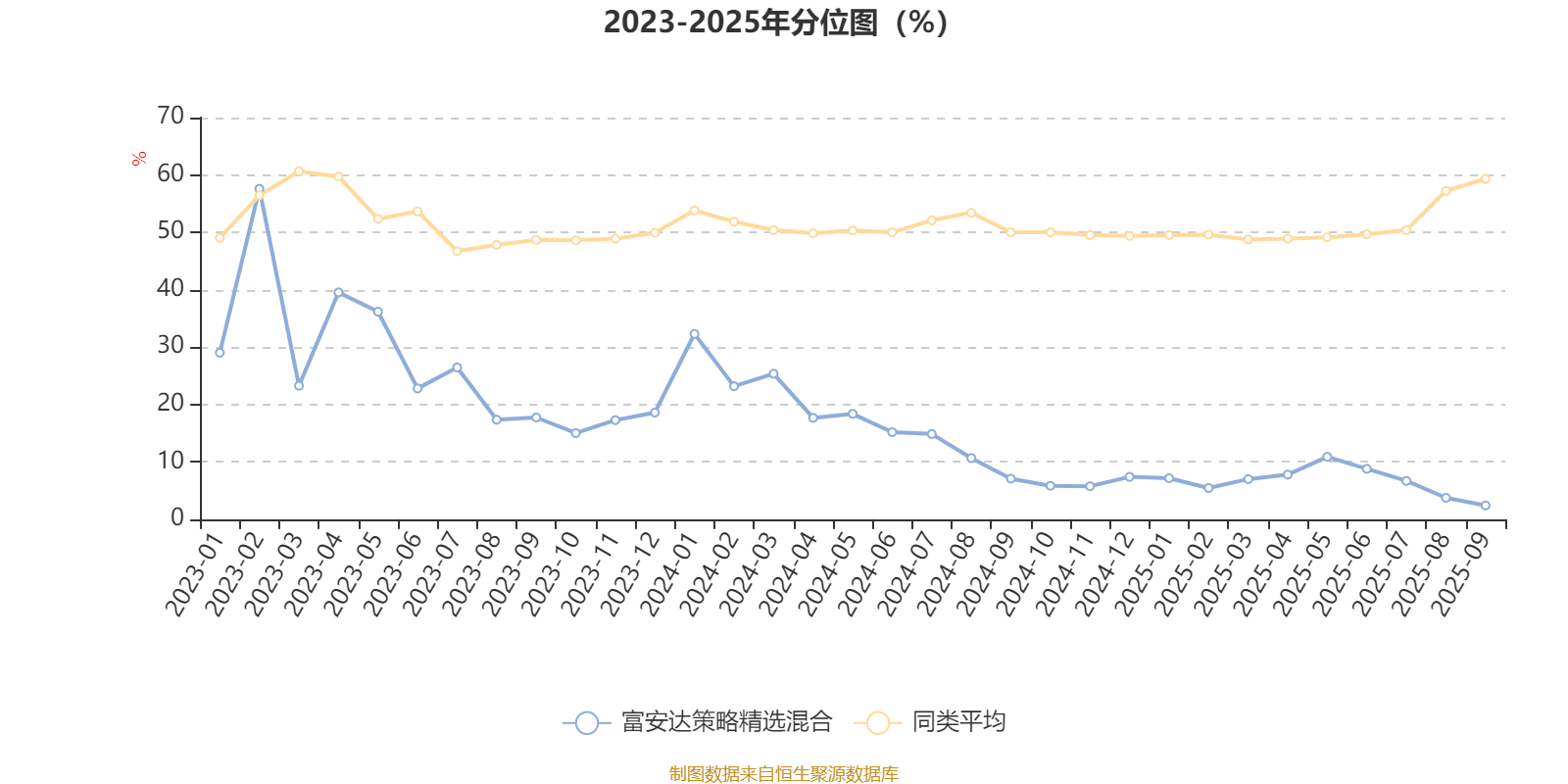 通过所选区间该基金净值增长率分位图,可以观察该基金与同类基金业绩比较情况。图为坐标原点到区间内某时点的净值增长率在同类基金中的分位数。