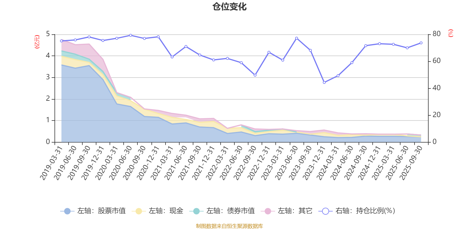 据定期报告数据统计,近三年平均股票仓位为65.54%,同类平均为72.18%。2020年上半年末基金达到79.29%的最高仓位,2023年末最低,为44.31%。
