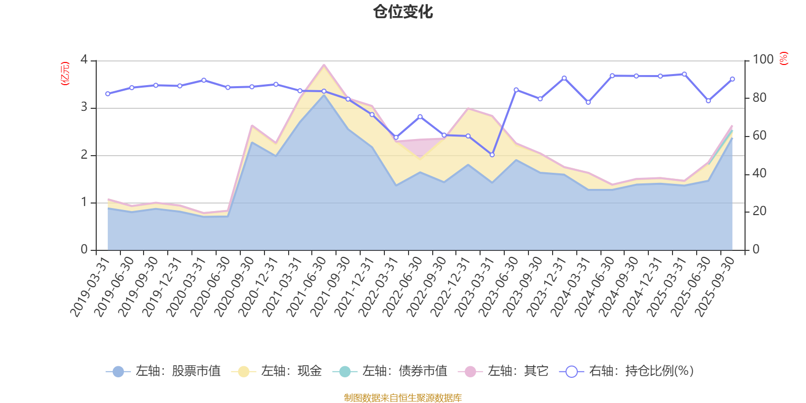 据定期报告数据统计,近三年平均股票仓位为81.72%,同类平均为72.18%。2025年一季度末基金达到92.79%的最高仓位,2023年一季度末最低,为50.26%。