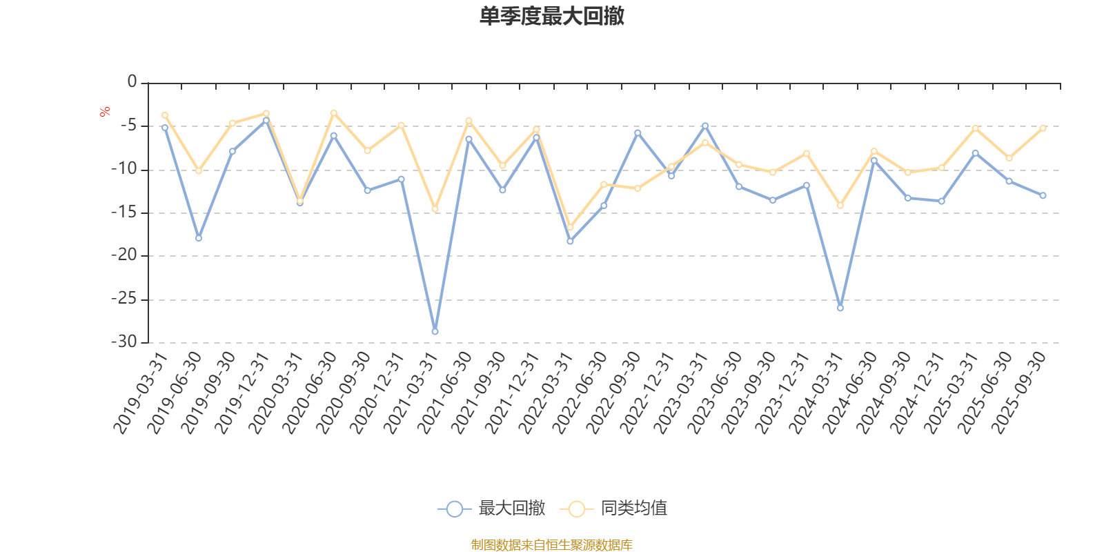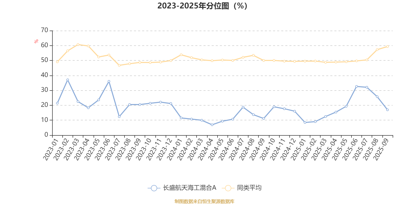 通过所选区间该基金净值增长率分位图,可以观察该基金与同类基金业绩比较情况。图为坐标原点到区间内某时点的净值增长率在同类基金中的分位数。