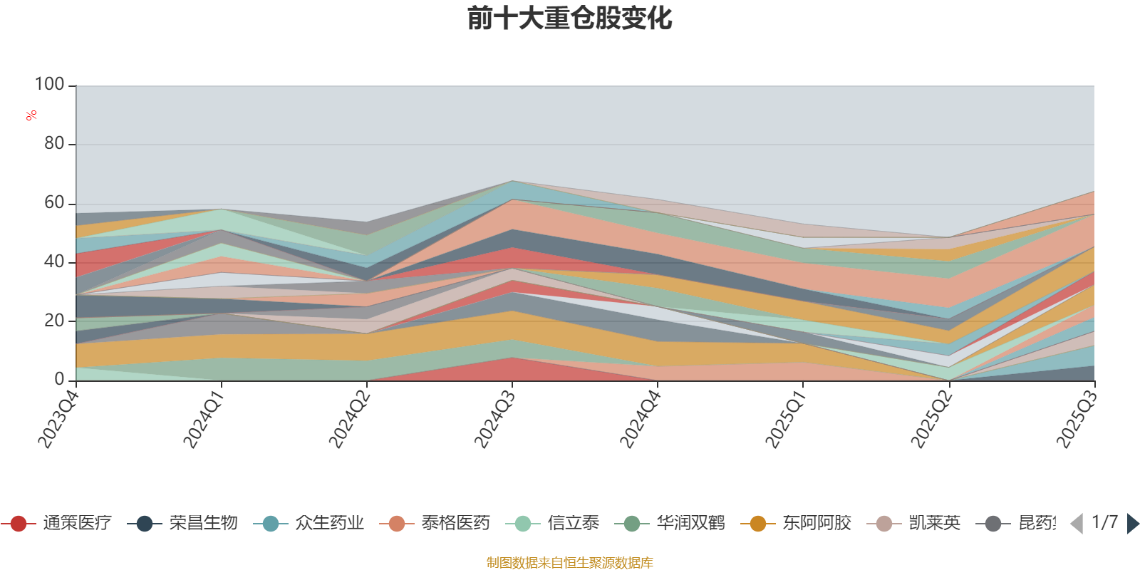 截至2025年三季度末,基金十大重仓股分别是恒瑞医药、药明康德、新产业、迈瑞医疗、众生药业、荣昌生物、凯莱英、芯原股份、京新药业、诺诚健华。