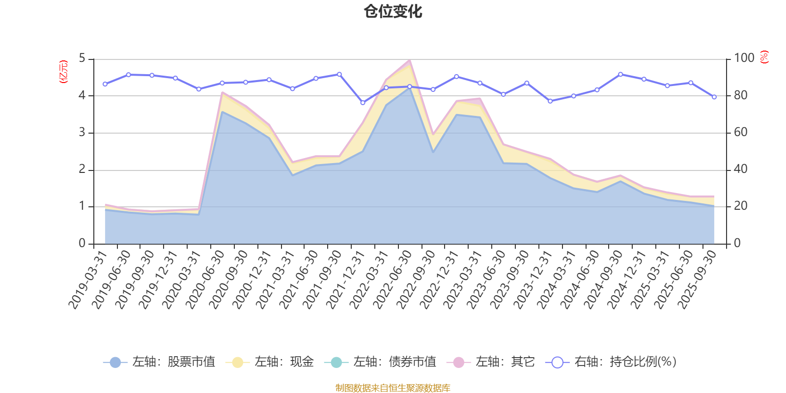 据定期报告数据统计,近三年平均股票仓位为84.89%,同类平均为88.22%。2021年三季度末基金达到91.69%的最高仓位,2021年末最低,为76.36%。