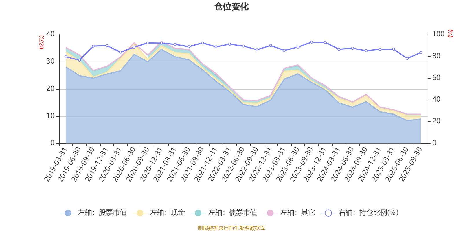 据定期报告数据统计,近三年平均股票仓位为87.01%,同类平均为87.53%。2023年三季度末基金达到93.04%的最高仓位,2019年上半年末最低,为76.53%。