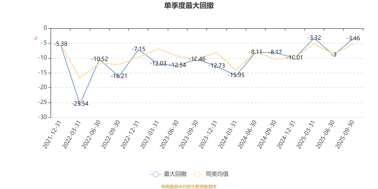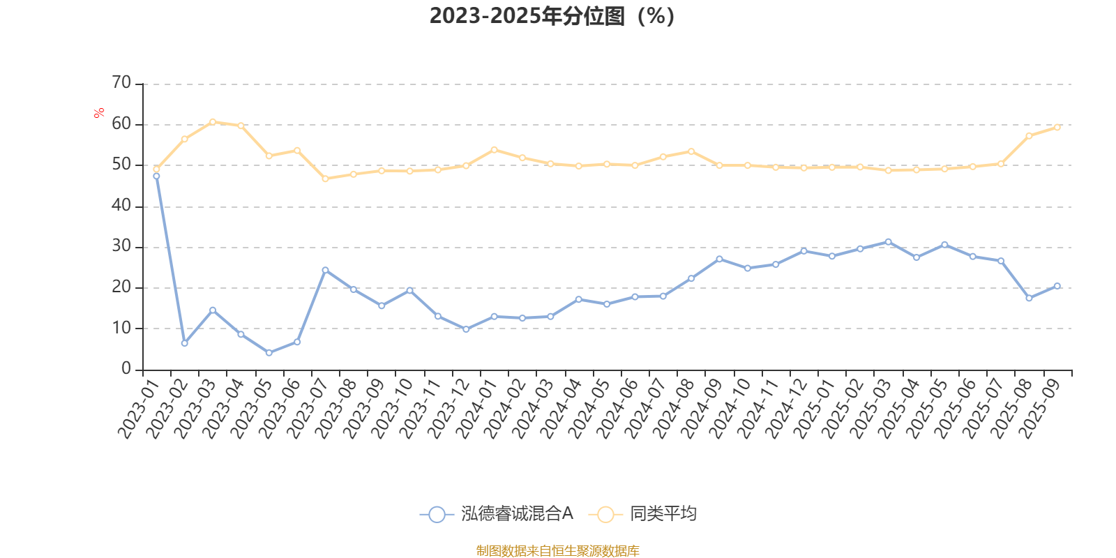 通过所选区间该基金净值增长率分位图,可以观察该基金与同类基金业绩比较情况。图为坐标原点到区间内某时点的净值增长率在同类基金中的分位数。
