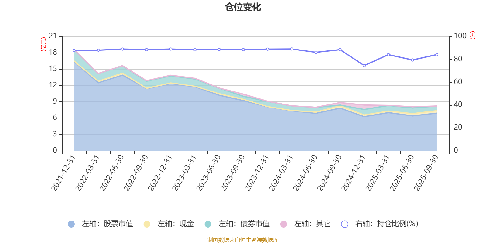 据定期报告数据统计,近三年平均股票仓位为85.76%,同类平均为72.18%。2024年一季度末基金达到89.04%的最高仓位,2024年末最低,为74.53%。