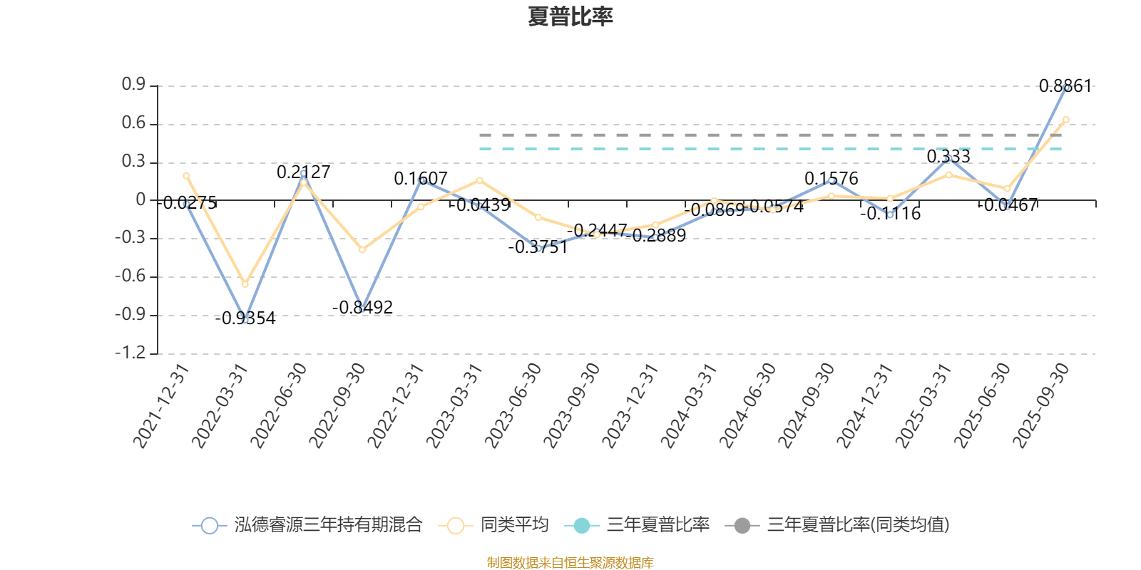 截至9月30日,基金近三年夏普比率为0.4033,位于同类可比基金825/1285。