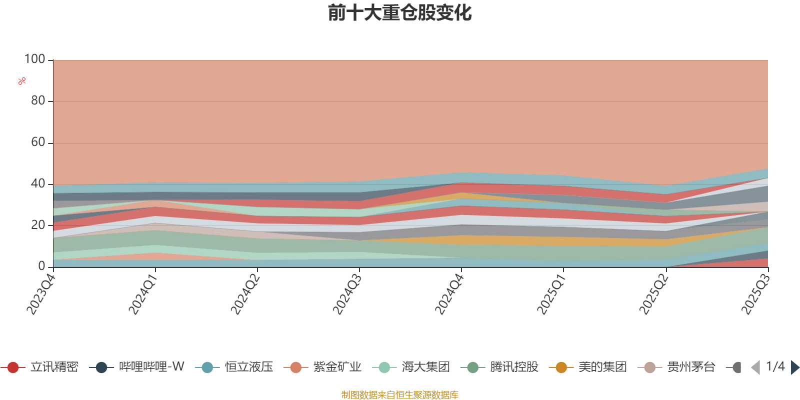 截至2025年三季度末,基金十大重仓股分别是阿里巴巴-W、腾讯控股、中芯国际、美团-W、立讯精密、恒立液压、快手-W、哔哩哔哩-W、天赐材料、宁德时代。