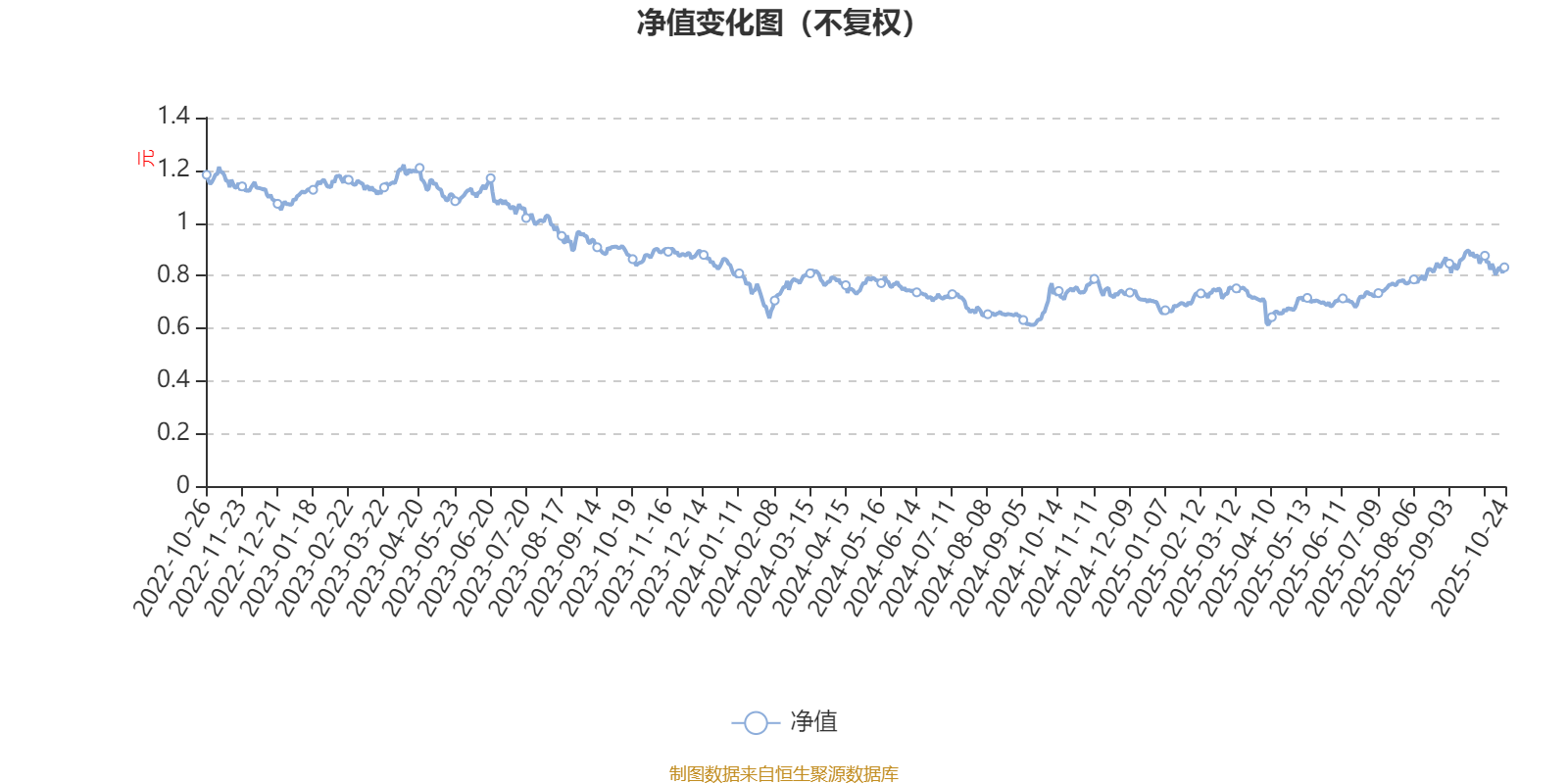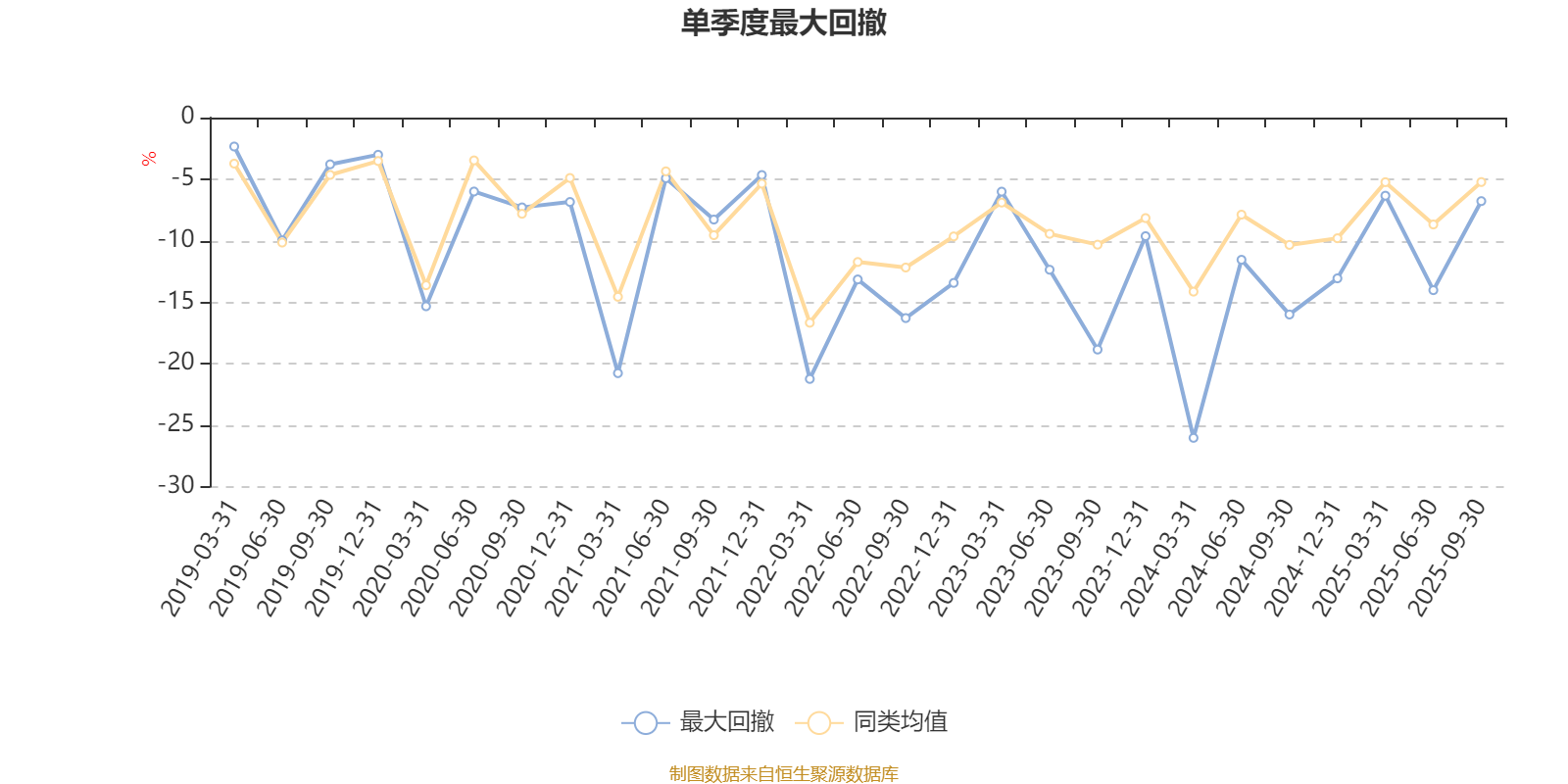 截至10月24日,基金近三年最大回撤为49.8%,同类可比基金排名1185/1283。单季度最大回撤出现在2024年一季度,为26.04%。