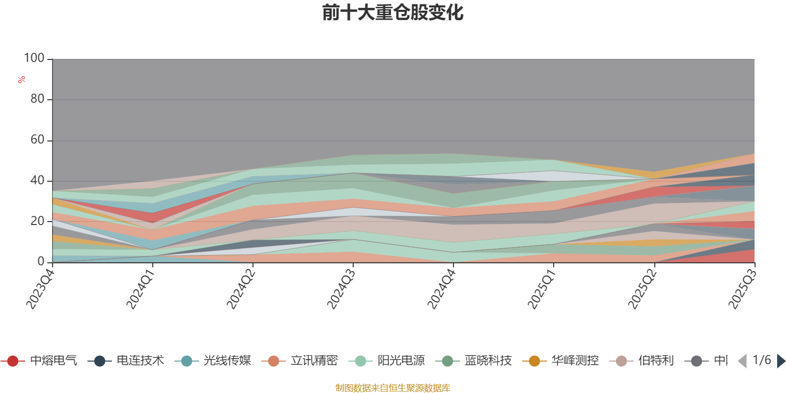 截至2025年三季度末,基金十大重仓股分别是万华化学、中熔电气、德赛西威、尚太科技、长川科技、中微公司、北方华创、电连技术、亿纬锂能、海博思创。