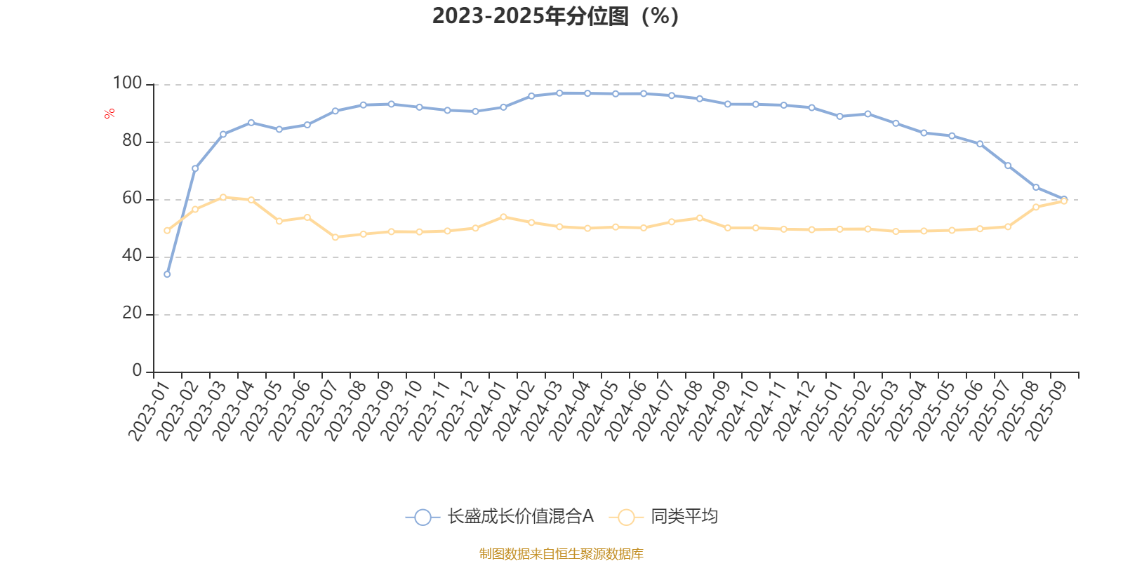 通过所选区间该基金净值增长率分位图,可以观察该基金与同类基金业绩比较情况。图为坐标原点到区间内某时点的净值增长率在同类基金中的分位数。