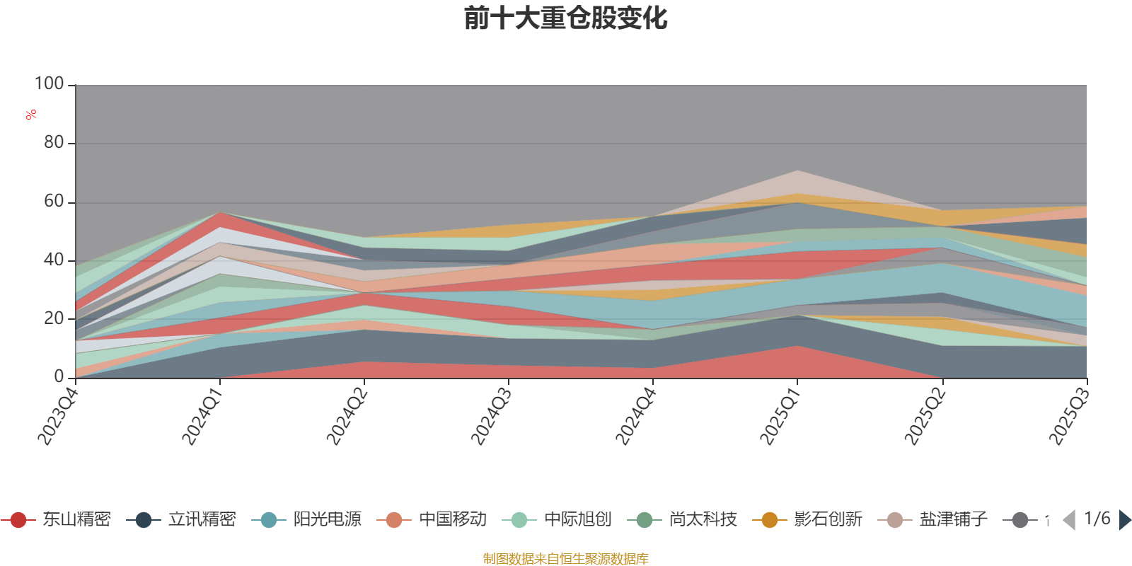 截至2025年三季度末,基金十大重仓股分别是宁德时代、立讯精密、亿纬锂能、中芯国际、歌尔股份、欣旺达、盐津铺子、迈瑞医疗、华东医药、招商蛇口。