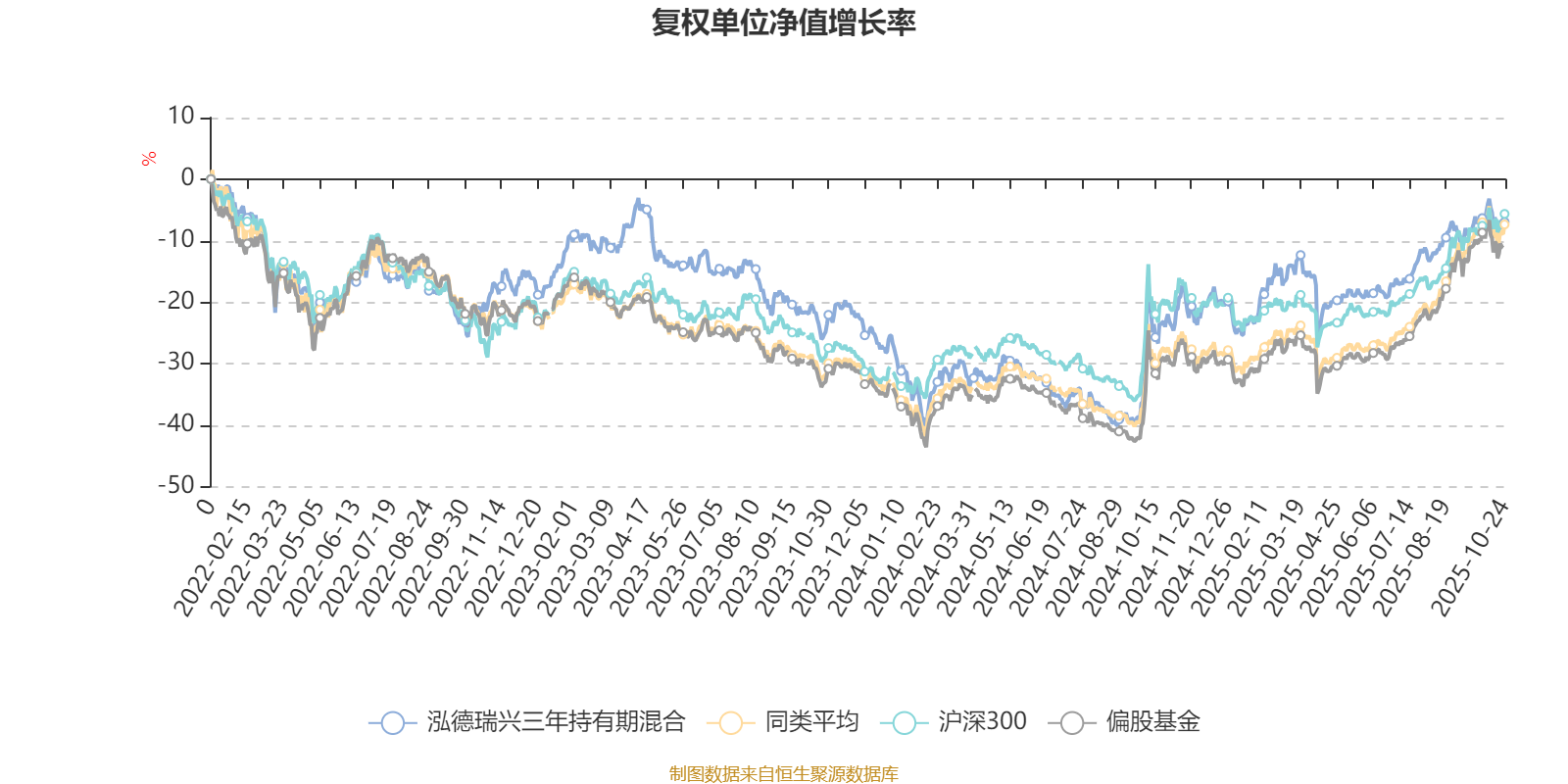 截至10月24日,泓德瑞兴三年持有期混合近三个月复权单位净值增长率为5.04%,位于同类可比基金106/130;近半年复权单位净值增长率为16.00%,位于同类可比基金104/130;近一年复权单位净值增长率为22.48%,位于同类可比基金79/130;近三年复权单位净值增长率为19.14%,位于同类可比基金69/124。