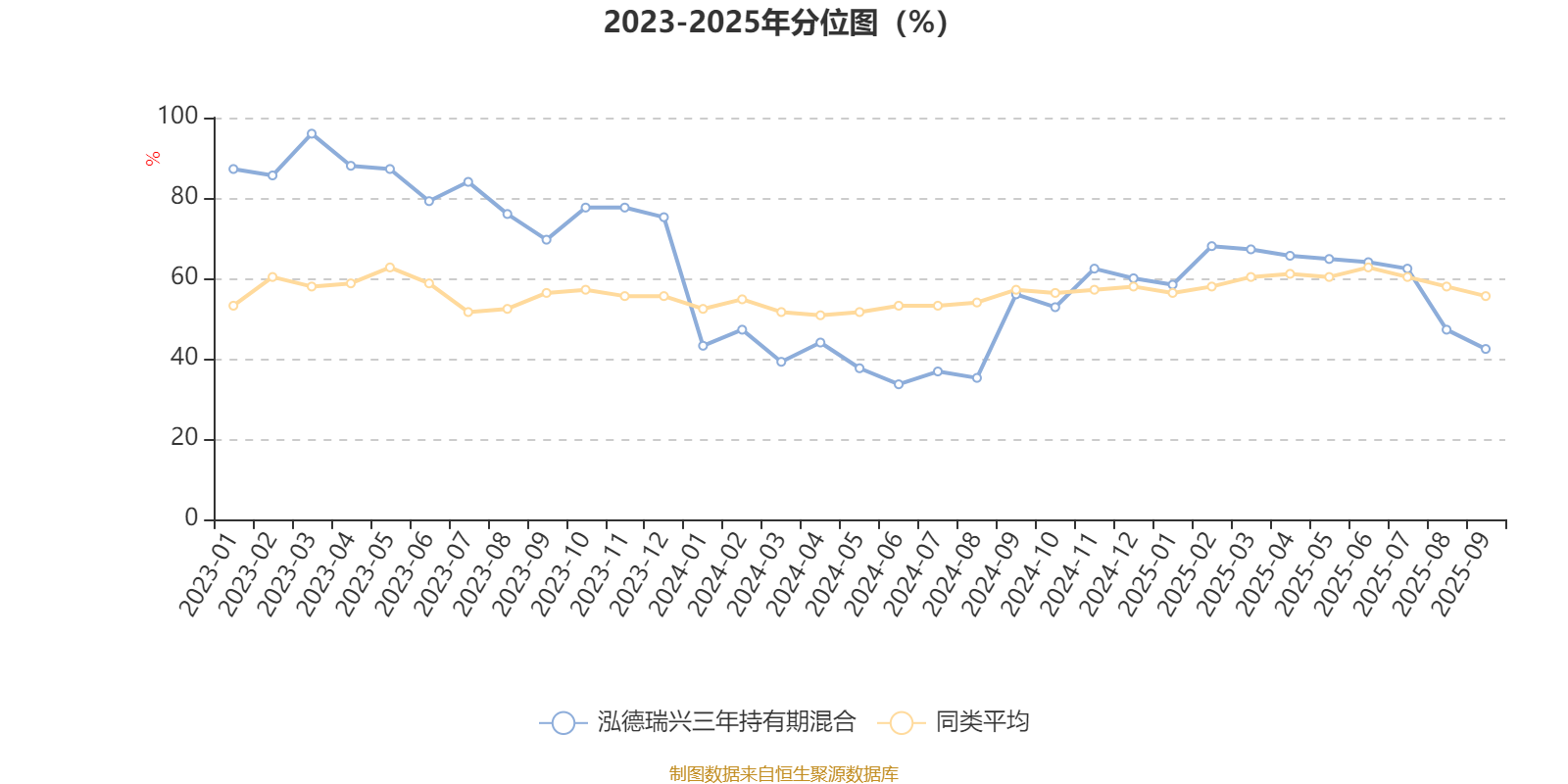 通过所选区间该基金净值增长率分位图,可以观察该基金与同类基金业绩比较情况。图为坐标原点到区间内某时点的净值增长率在同类基金中的分位数。