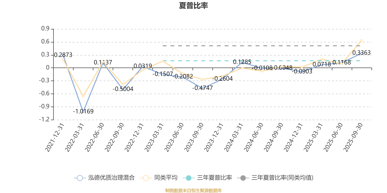 截至9月30日,基金近三年夏普比率为0.1651,位于同类可比基金1063/1285。