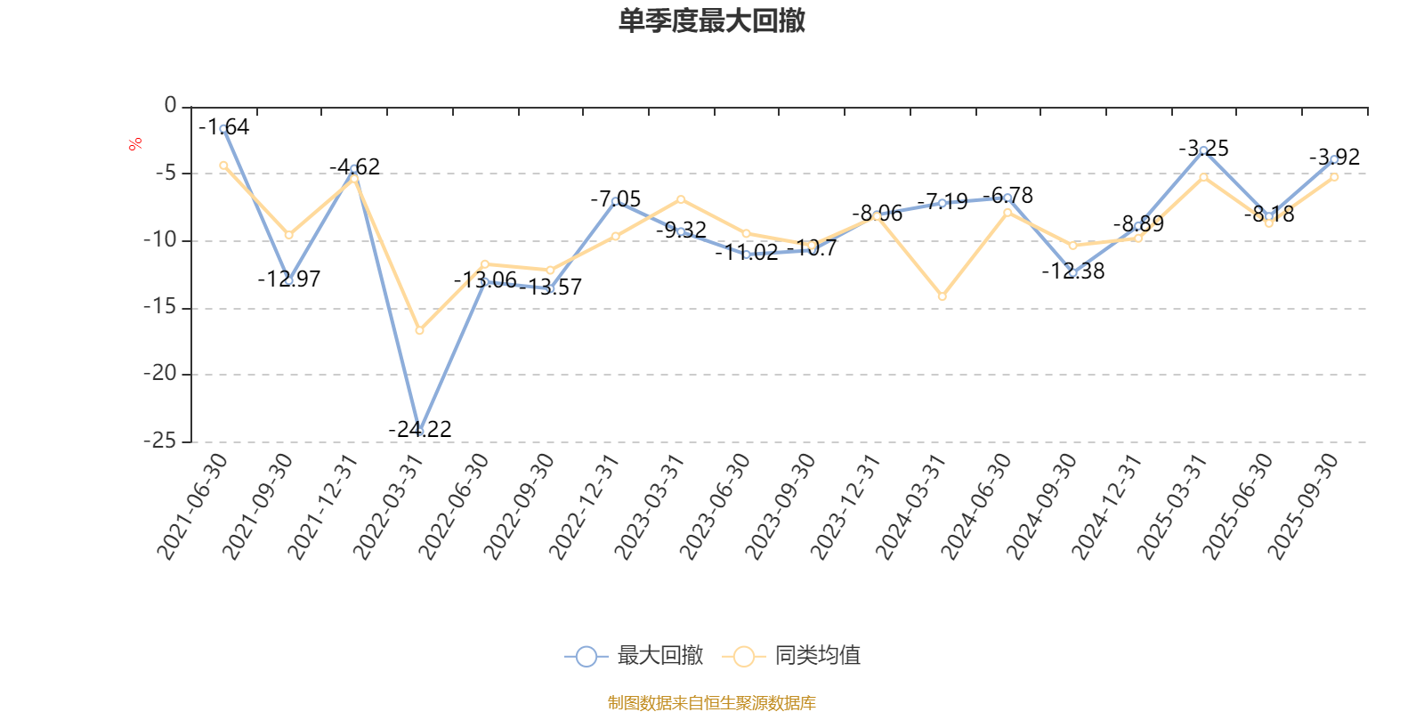 截至10月24日,基金近三年最大回撤为31.08%,同类可比基金排名584/1283。单季度最大回撤出现在2022年一季度,为24.22%。